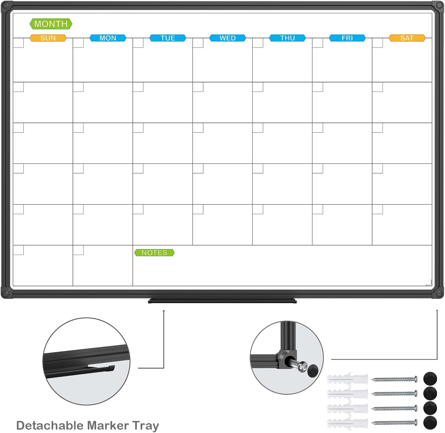 - SMOOTH & ROBUST DRY ERASE PERFORMANCE: Smooth Scratch-Resistant surfaces, enjoy writing message notes on 35.8" x 24" calendar board, easily dry wipe with all dry-erase markers.