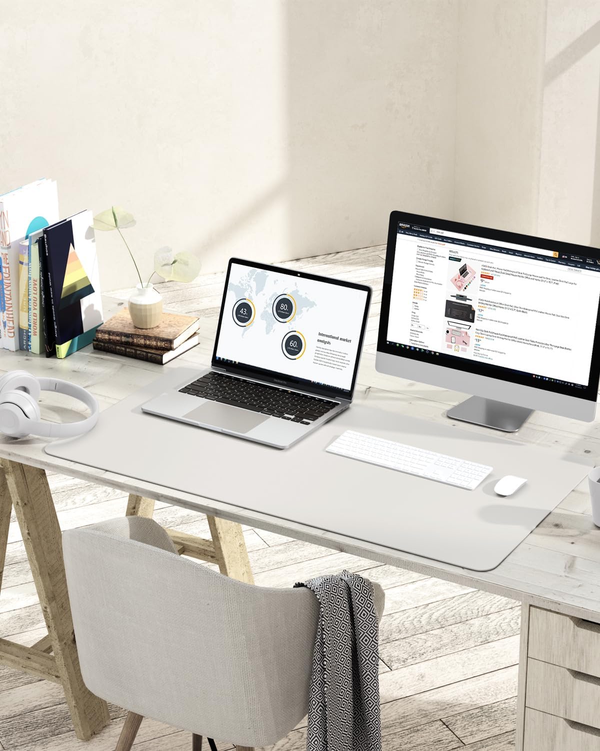 YSAGi Non-Slip Leather Desk Pad L Size, Waterproof Laptop Computer Desk Keyboard Mat, Table Protector Blotter Mat, Large Mouse Pad for Office/Work/Home/Decor(Apricot Gray, 35.4" x 17")