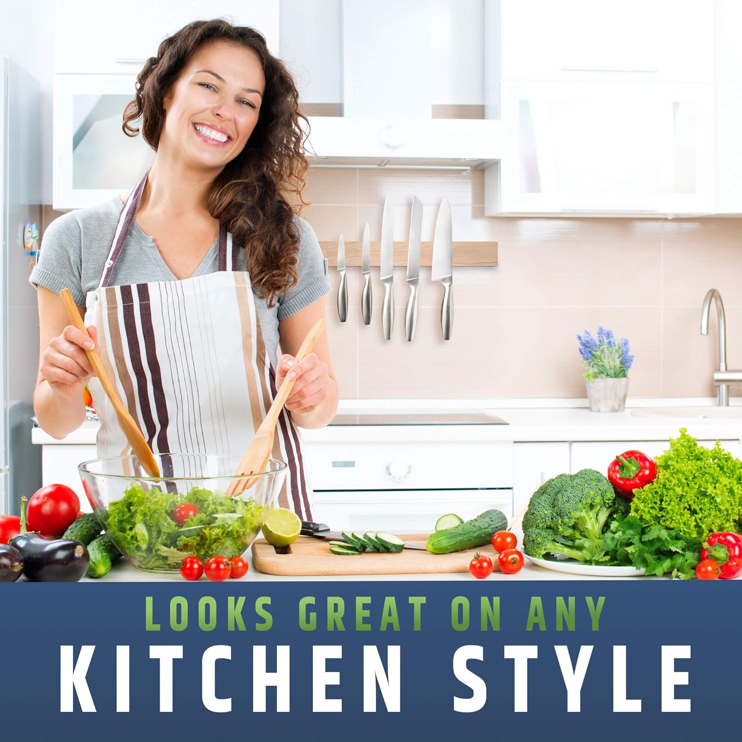 - POWERFUL NEODYMIUM MAGNETS: Our upgraded 16" maple wood knife bar features heavy-duty magnets that never lose their strength. The even magnetic force across the bar securely holds knives while allowing easy release with a gentle tug. The magnets are hidden inside the wood so they will never rust.