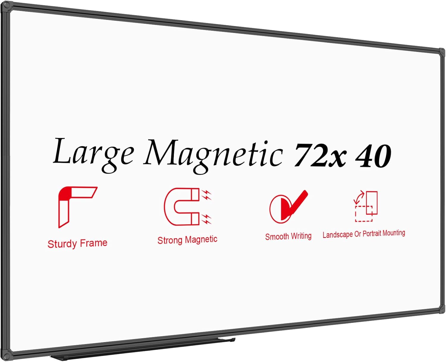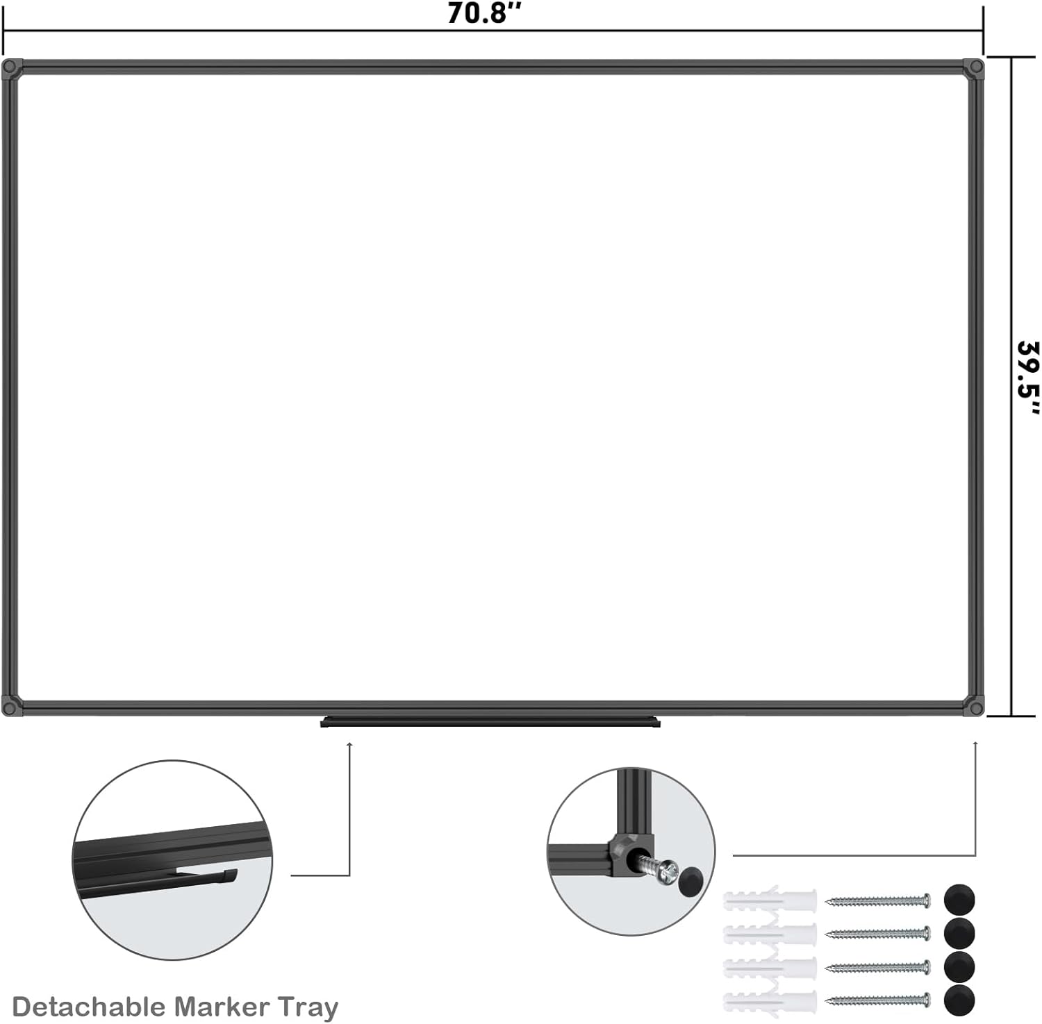 - ELEGANT AND STURDY BLACK ALUMINUM FRAME: Anti-Scratch satin black aluminum frame & detachable marker tray, Round nylon corners, Sturdy whiteboard structure perfect organizer for school home and office.