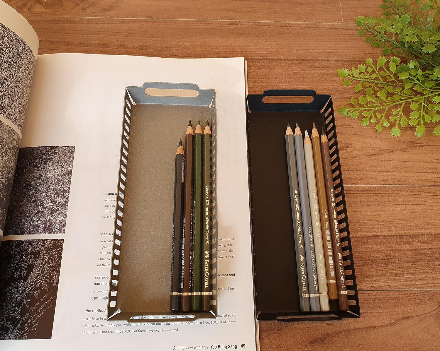 Metal Pen Pencil Tray Holder Office Desk Drawer Organizer Small Vanity Accessory Storage (Black)
