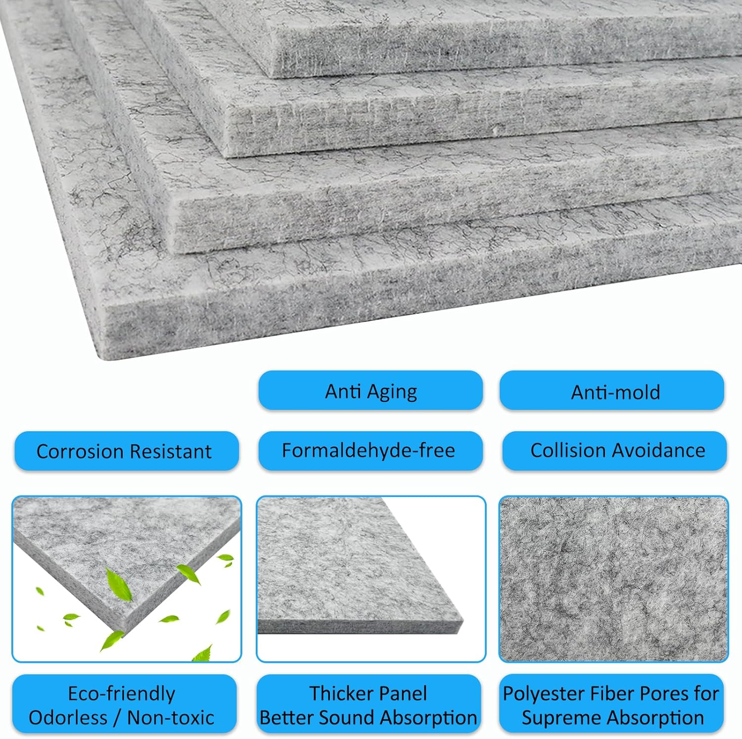 - 【IMPROVE SOUND QUALITY】: These durable acoustic absorption panels are thickened to more effectively absorb sound energy, reduce reverb, echo and mid high frequency noise; Average absorption coefficient: 0.83; NRC(noise reduction coefficient): 0.91