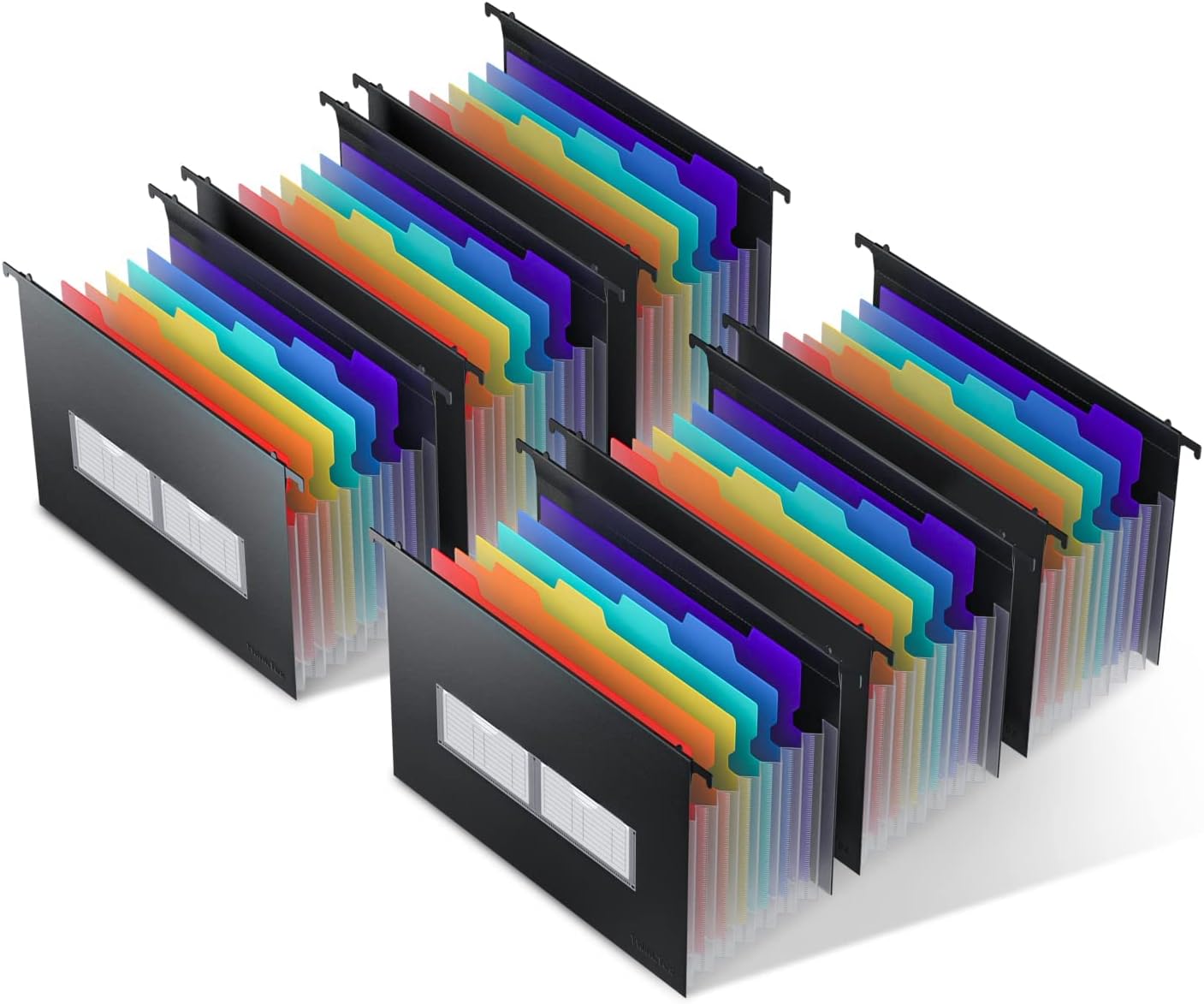 ThinkTex Plastic Expanding Hanging File Folders, 7 Innovative 1.2/'' Accordian Pockets, Large Capacity, Multi-Color Tabs, Letter Size for Filing Cabinet - Black-6 pack