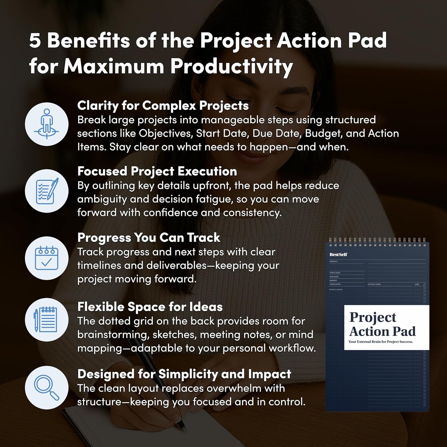 BestSelf Project Action Pad - Daily Task Planner, To-Do List & Action Pad for Boosting Productivity and Effective Project Management