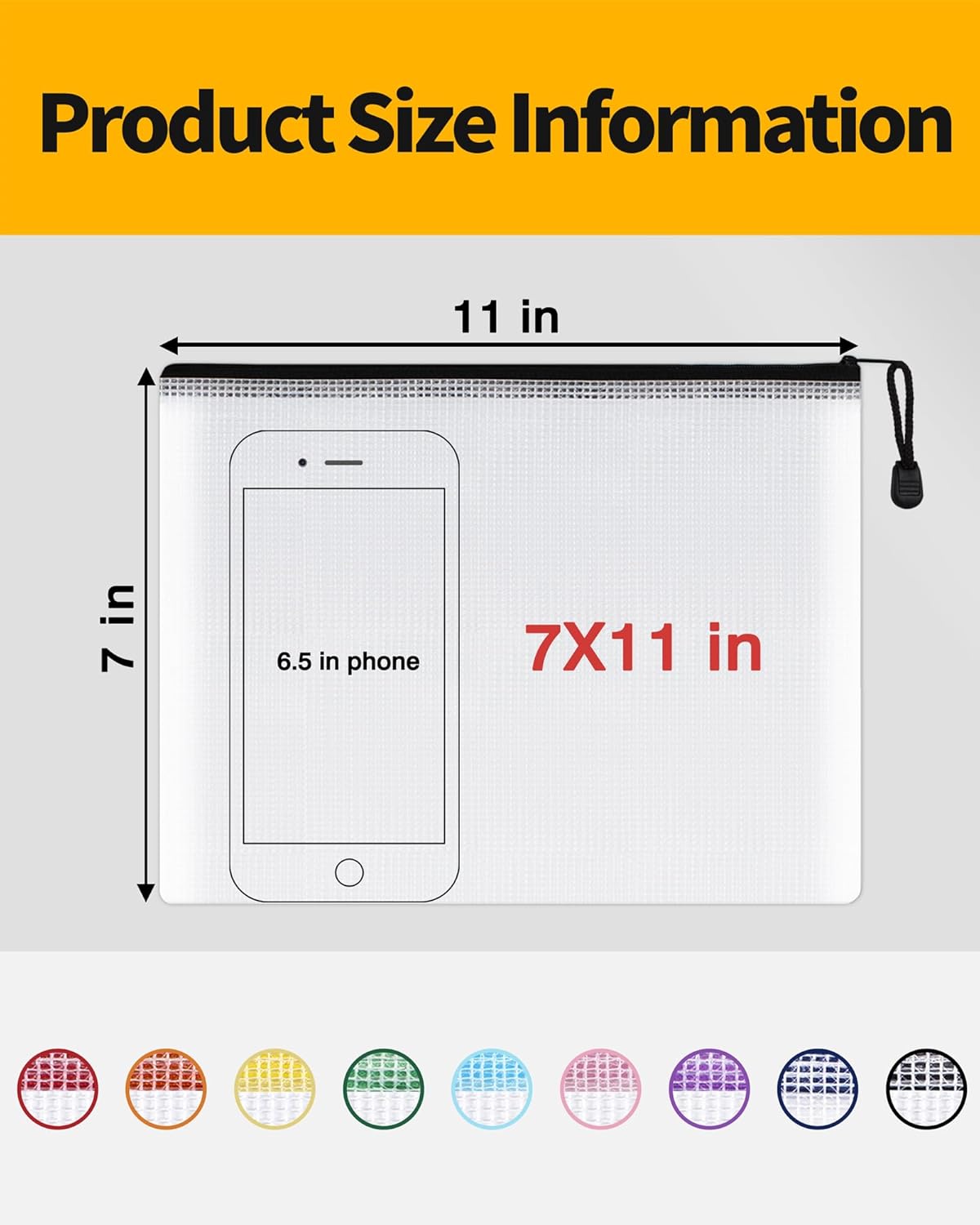 - PACKAGE CONTAINS: You will get a set of 18 Packs 7x11 inches multi-colored plastic zipper pouches for the most paper size of letter-size prints or smaller document storage. It can help you organize your miscellaneous items to meet your daily life and work. Manufacturer recommended age 3 years and up
