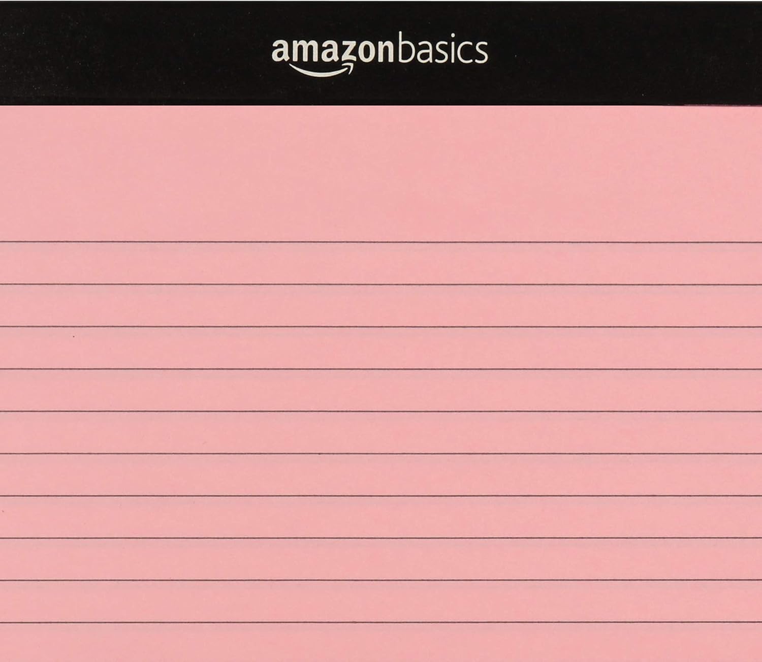 Amazon Basics Wide Ruled 8.5 x 11.75-Inch 50 Sheet Perforated Lined Writing Note Pads, Pack of 6, 300 Count, Multicolor