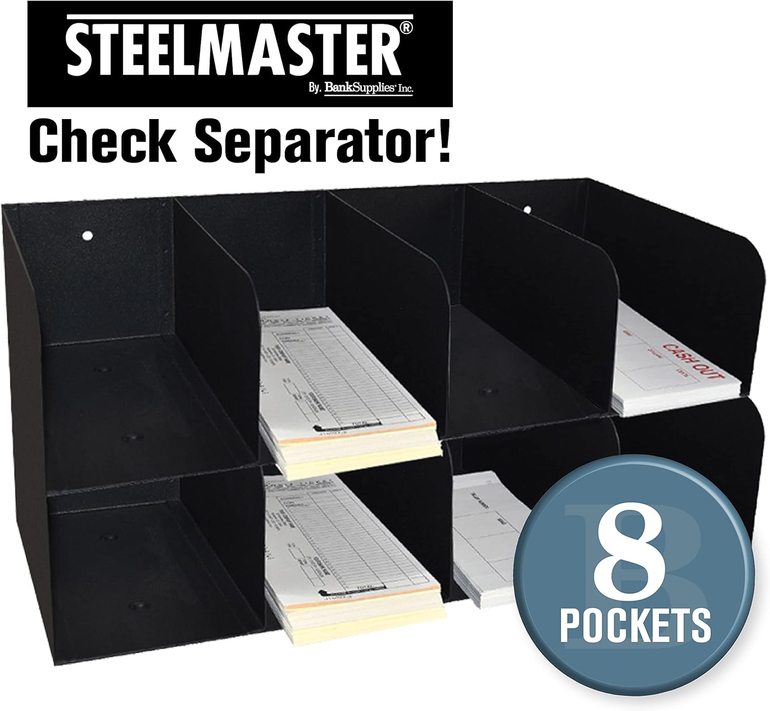 - CHECK HOLDER ORGANIZER: This countertop check separator from BankSupplies is ideal for tellers separating and storing checks, money orders, clearings, and deposit slips. It helps clear out your desk space and keeps it clutter-free.