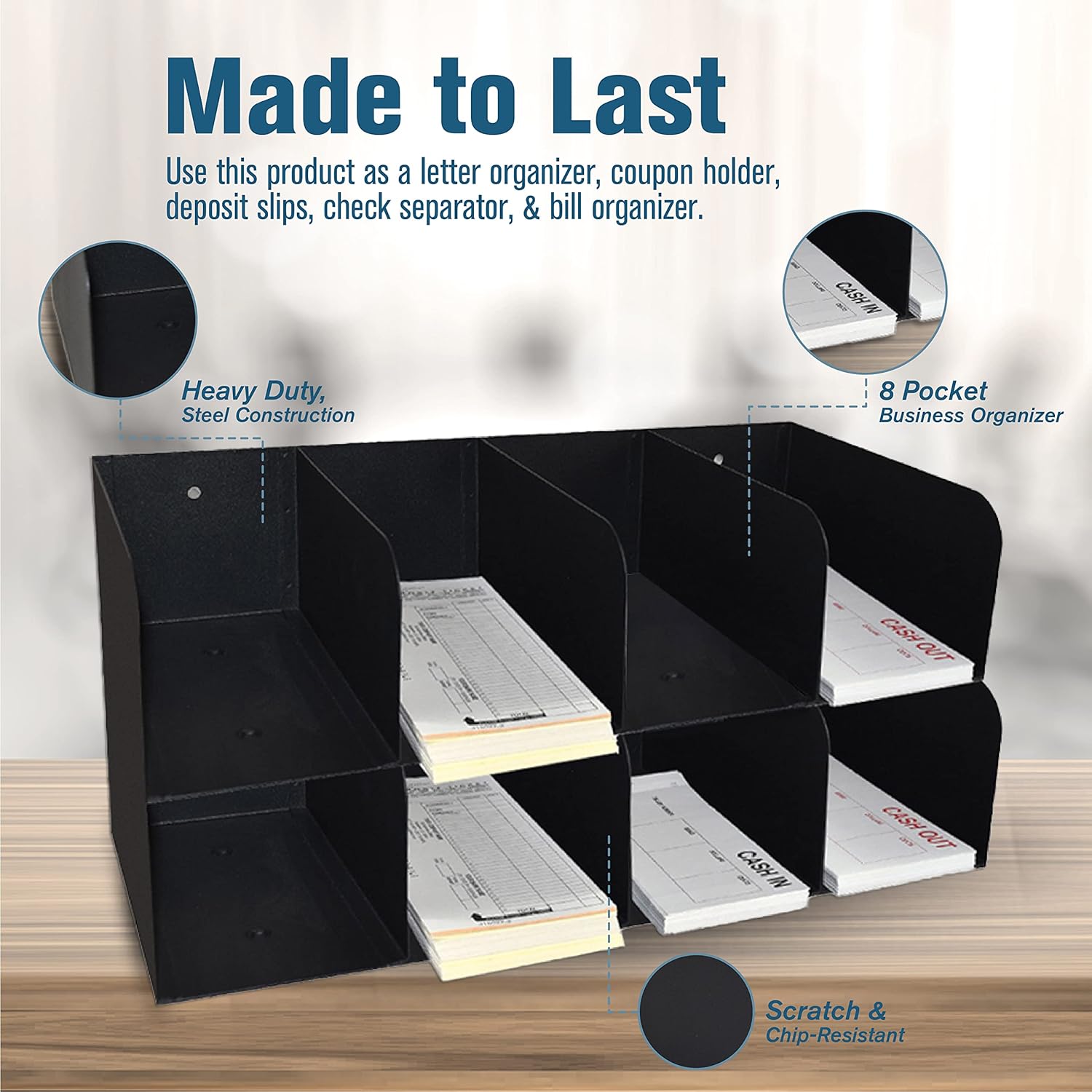 BankSupplies Check Sorter Organizer - 8 Pocket, 2-Tier Design - 4 Over 4-3 ¾” H x 16" W x 8" D - Scratch & Chip-Resistant Finish - Steel Construction - Pre-Drilled Holes - Document Organizer