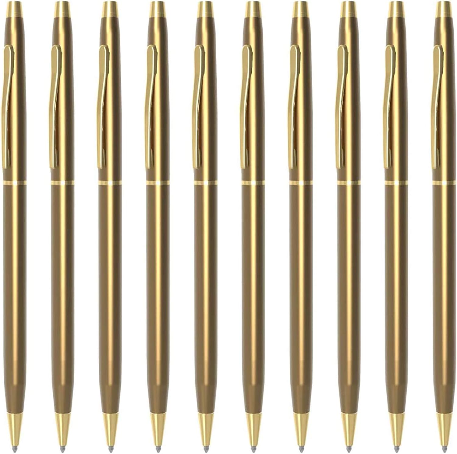 Cambond Ballpoint Pens Fancy Pens - Black Ink Bulk Pens 1.0 mm Medium Point Retractable Metal Pen Comfortable Writing for Men Women Police Uniform Office Business, 10 Pack (Champagne Gold)