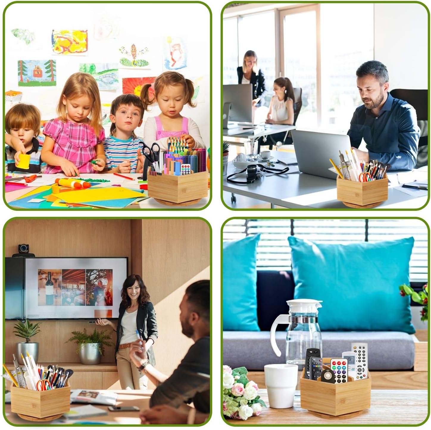 Marbrasse Bamboo Art Supply Organizer, Rotating Pencil Pen Holder, Office Supplies Desktop Storage Caddy, Like Colored Pencils, Pen, Markers, Paint Brushes