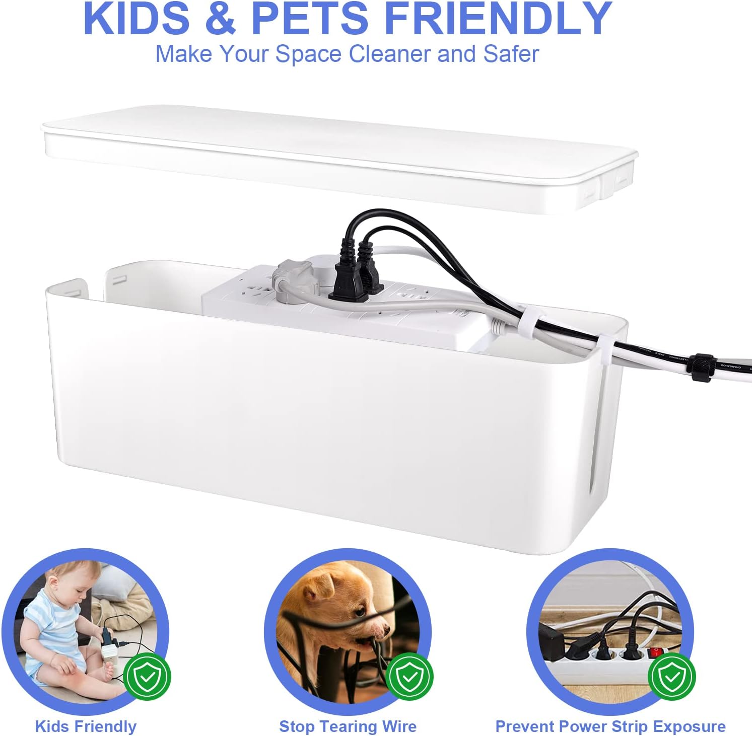 - KIDS & PETS FRIENDLY - Clasp design to protect kids and pets from the power strips and other electrical equipment.