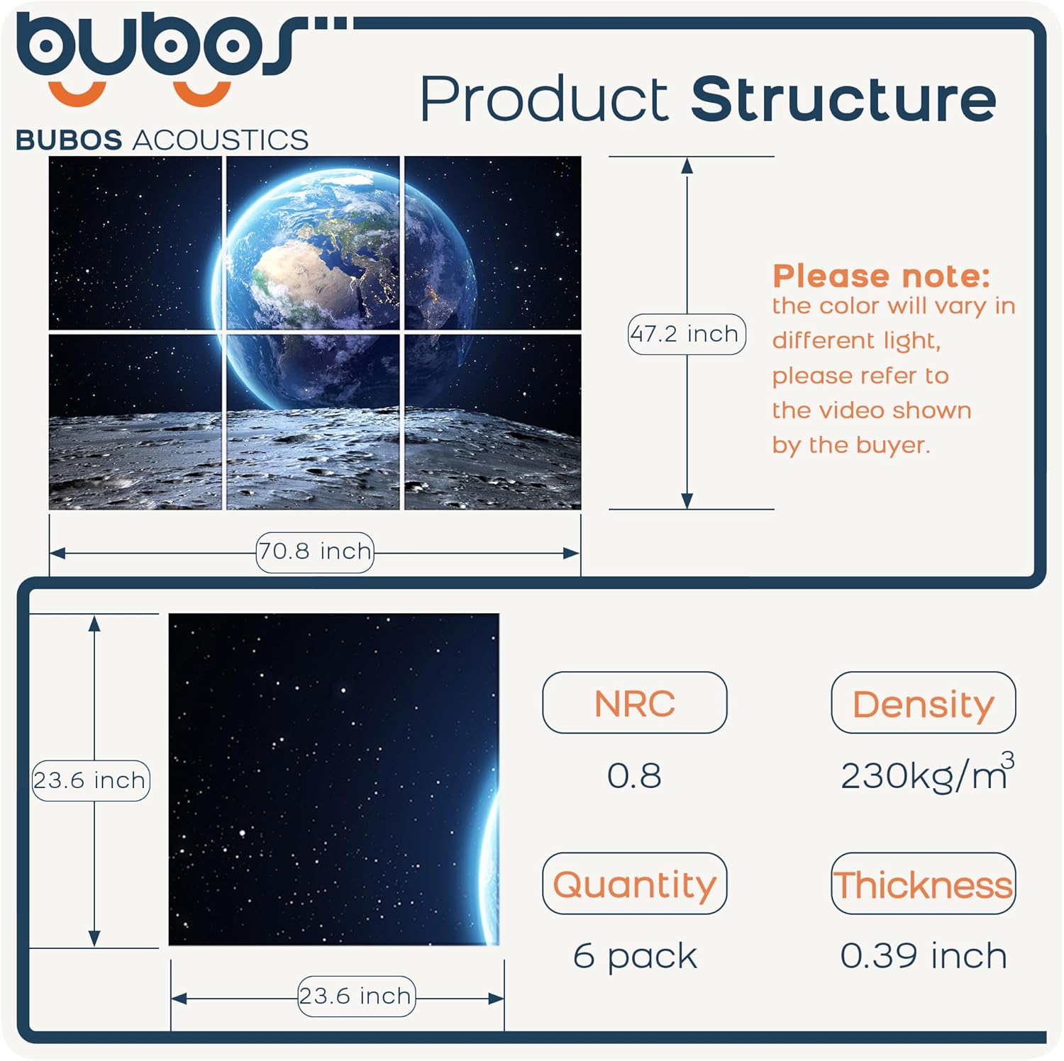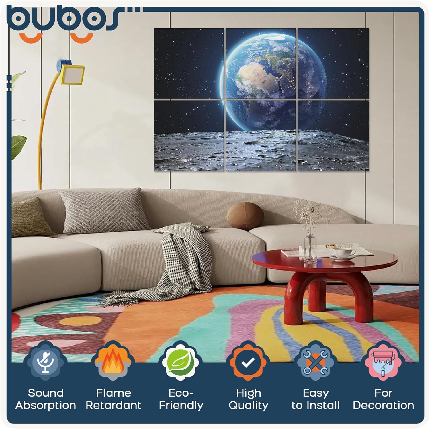 BUBOS 6 Pack Art Acoustic Panels Soundproof Wall Panel,70.8X47.2 Inches Large Sound Absorbing Panel,Self-adhesive Decorative Acoustical Wall Panels, Acoustic Treatment for Home Office(Earth)