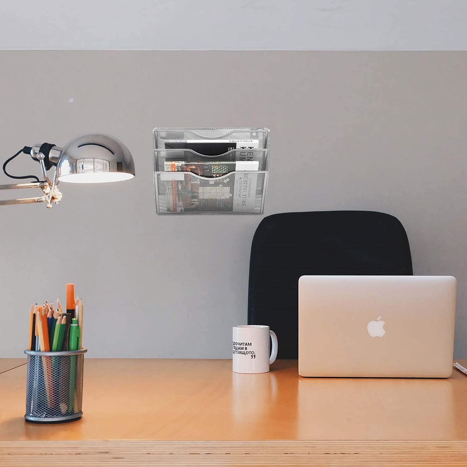 EASEPRES 3 Pocket Mesh Hanging Wall File Organizer, Wall Mounted Mail Paper Document Folder Holder, Clipboard Storage Organization Magazine Rack with Nametag Label for Office Home School, Silver