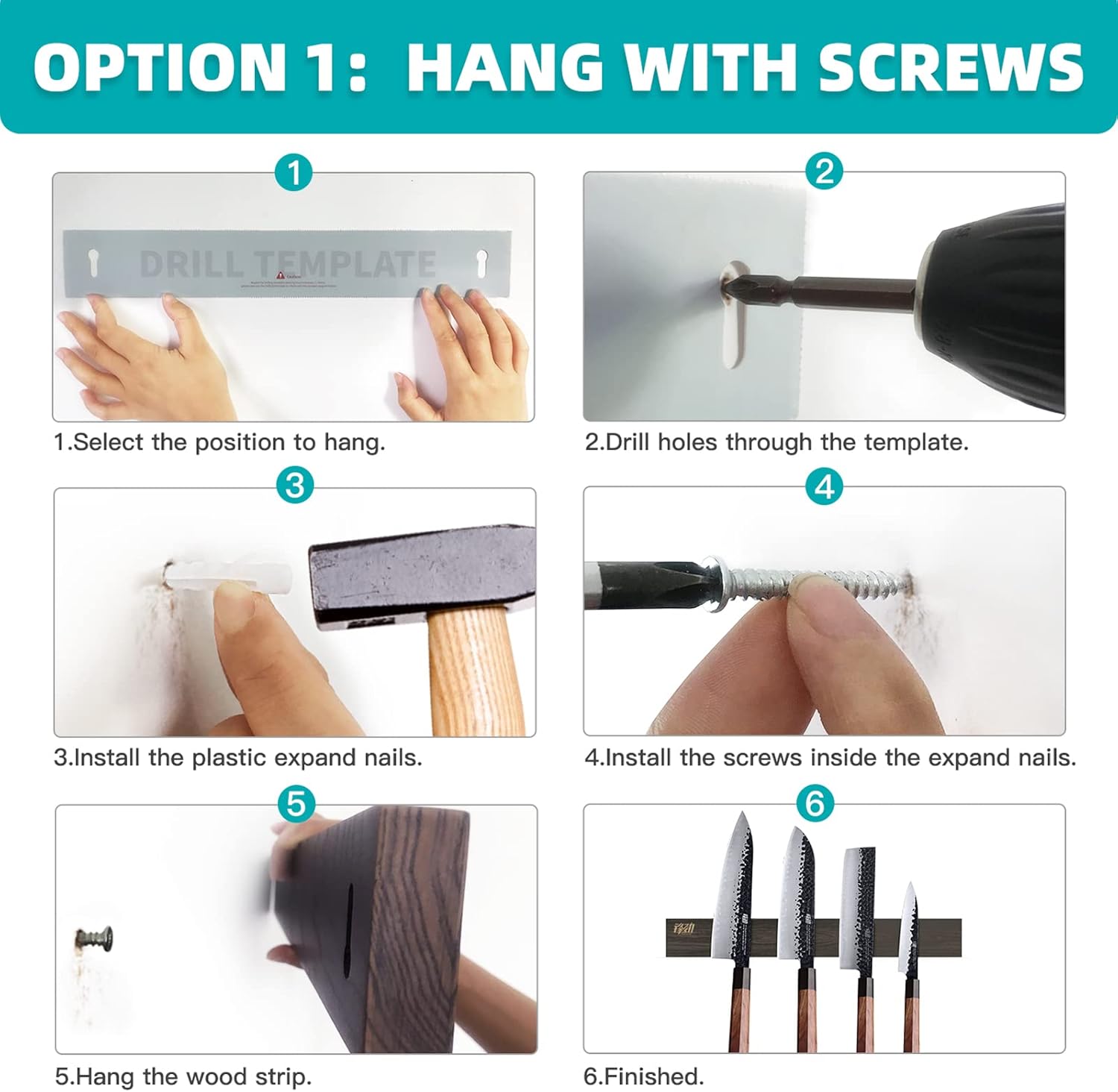 - INSTALLATION “OPTIONS” - The installation methods developed by the Findking design team allow for versatility and accuracy. The accuracy is provided by the drilling template and is important for keeping the magnetic strip level. The versatility is in the two different types of methods for properly securing your magnetic strip to any wall. The installation provides two different types of securing methods (3M tape or screws.)