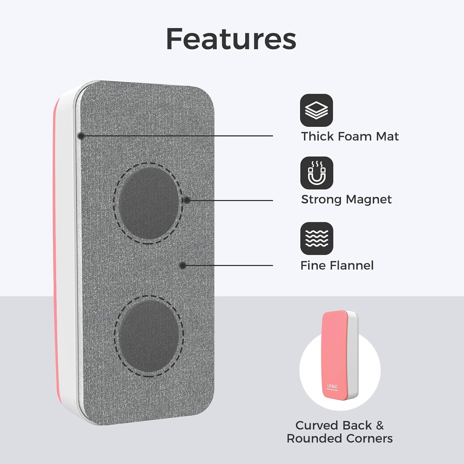 loukin Magnetic Dry Erase Eraser, Whiteboard Eraser, Glass Board Remover, 3.4 fl oz Whiteboard Cleaner Included, for Classroom, Home and Office Use (Pink)