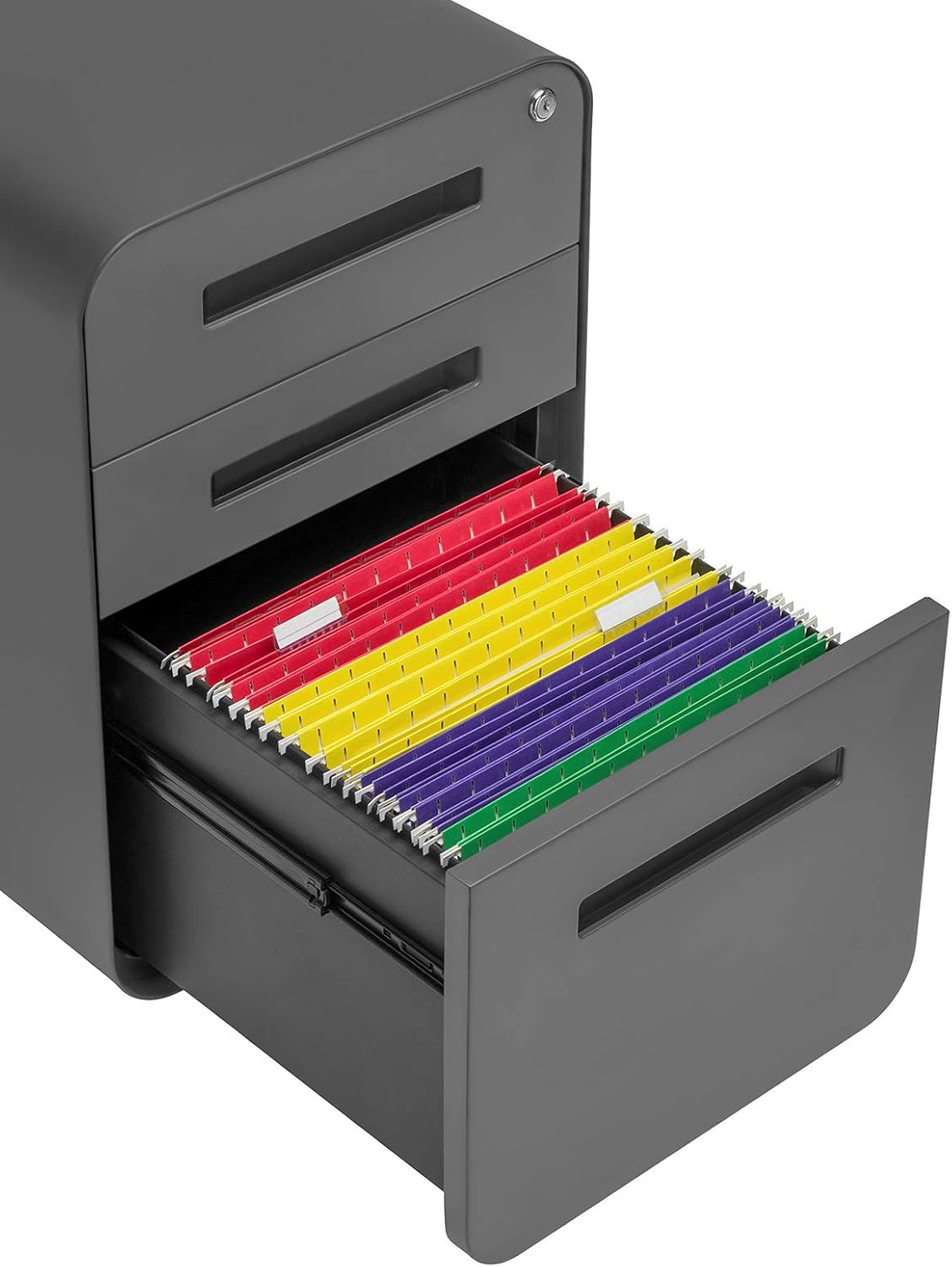 - Modern Style with Rounded Corners. While most file cabinets feel like artifacts of a bygone era, our smooth surfaces, inset handles, and rounded corners create a cabinet that belongs in a modern office.