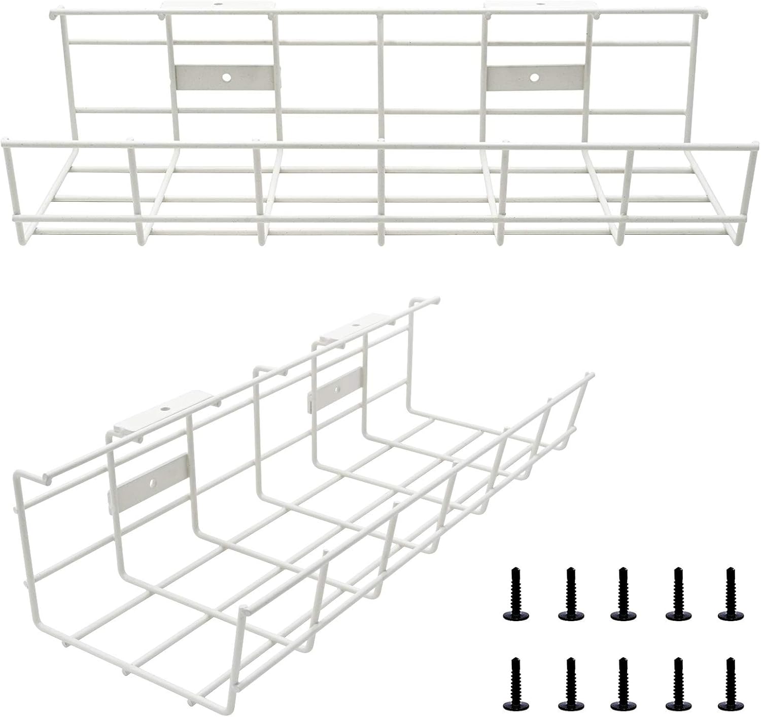 Under Desk Cable Tray - 2 Pack Cable Raceway for Wire Management. Metal Wire Organizer for Office, Studio and Home. Super Sturdy Cord Organizer for Desk - White Cable Management Under Desks