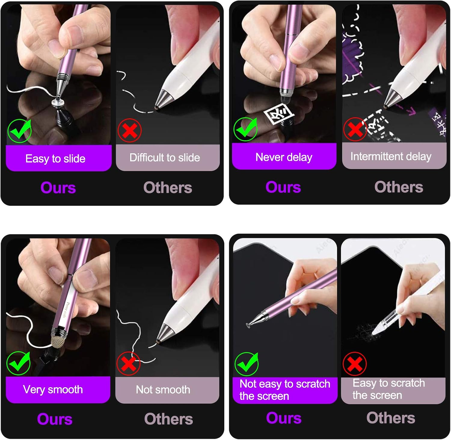 - ✔【4-in-1 UNIVERSAL】 -- Penyeah Stylus Pens for touch screens include 4 different of touch screen replaceable tips: 1 X 0.27" clear disc tip; 1 X 0.27" mesh fiber tip; 1 X 0.2" rubber tip and 1 X 0.27 " rubber tip; plus a smooth black ink ballpoint writing function. More functional than that of current similar model. It 's your NEW CHOICE!