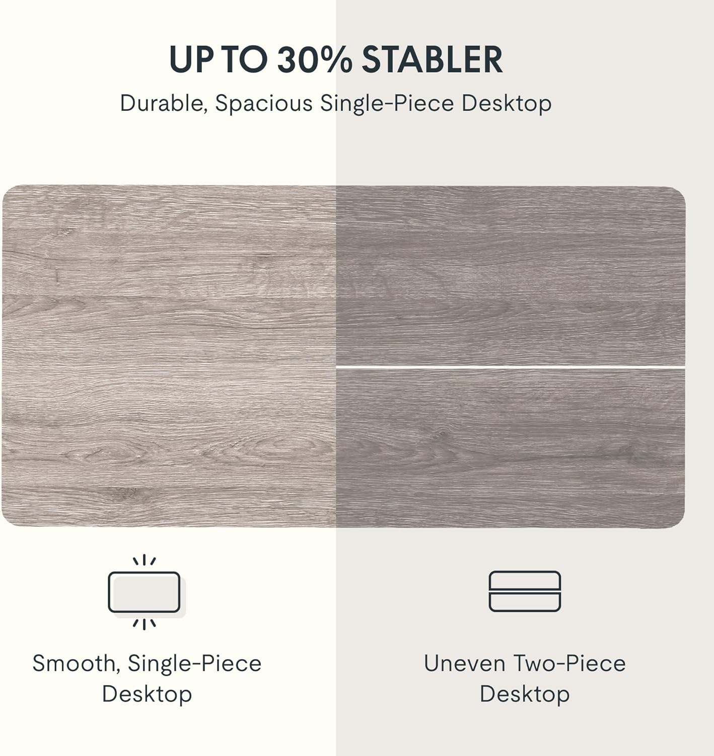 - 1" THICK ONE-PIECE DESKTOP:Experience the elegance of a completely smooth, seamless desktop surface. This design not only enhances the aesthetic but also ensures a sturdier and more stable structure compared to spliced tabletops.