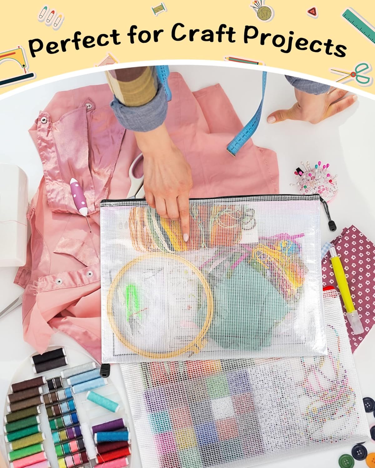 Umriox 5PCS A3 Zipper Bags, Extra Thick Mesh Zipper Pouch, Large Storage Bags, Zipper Pouches for Office Supplies, Puzzles Organizing Storage