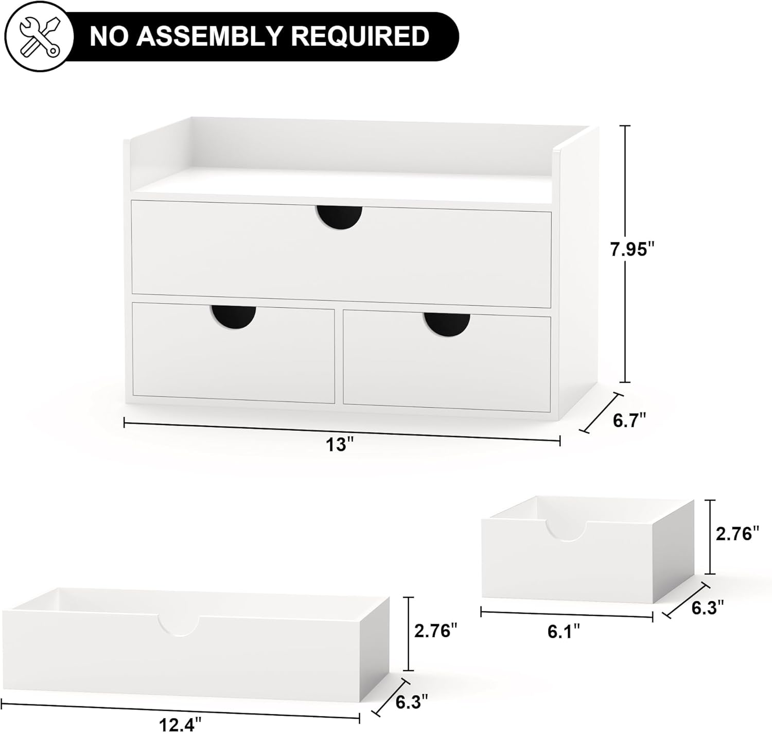 - 【Storage and Multi-function】 Dimension: 12.99” x 6.6” x6.29”(L*W*H). The Drawer Organzier can store all kinds of documents, tools, accessories and bills of your desk. You can put this desktop organizer with drawers in the office, study, dresser, bathroom,countertop,etc.