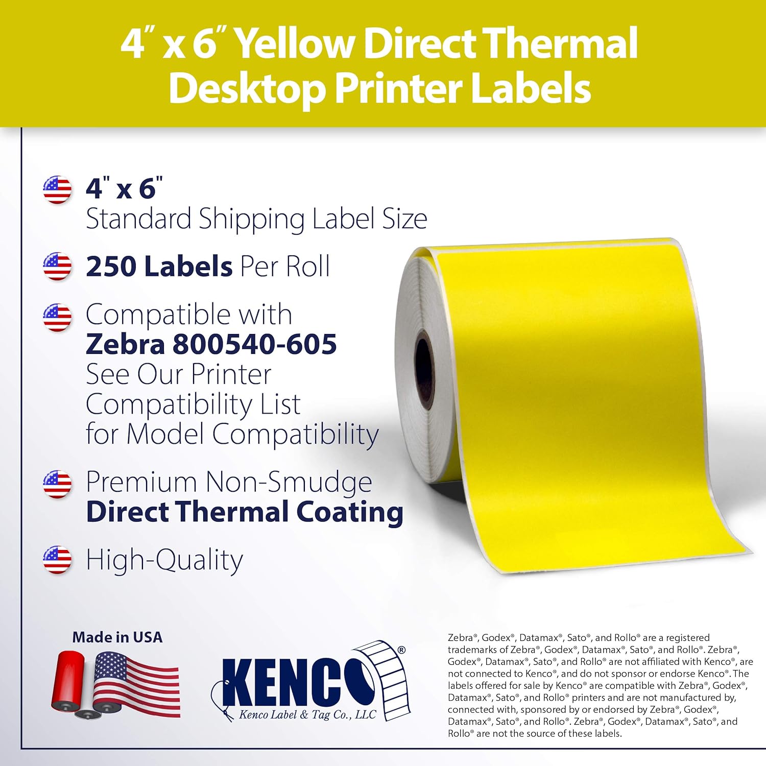 4" X 6" Direct Thermal Perforated Stickers Labels for Shipping Labels, Inventory, and Color Coding - Compatible with Zebra, Rollo, Godex and More (Yellow, 12 Rolls)