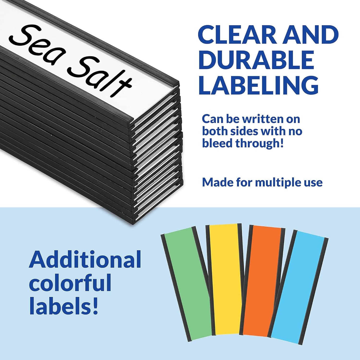 - Everything You Need for 50 Strong Magnet Backed Labels: Designate and organize! Use as drawer and shelf label holders, bookshelf and file cabinet labels and more! The clear label protectors keep your labels crisp and clean.