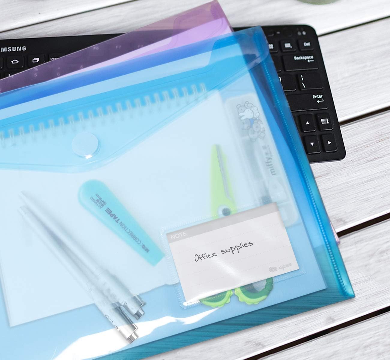 - Easy Storage - Perfect for storing US letter / A4 size paper, bills, documents, stationery and other small items storage.The poly envelop folders can be used at school, home, work, office, travel.