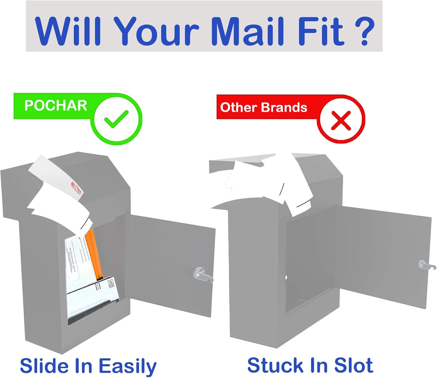 - š STORAGE SPACE: The mailbox has an exterior dimension of 9.75ā (L) x 4.25ā (W) x 14.75ā (H), and the mail slot measures 8.6'' x 2.5'', giving it plenty of space for receiving and securing small-sized items.