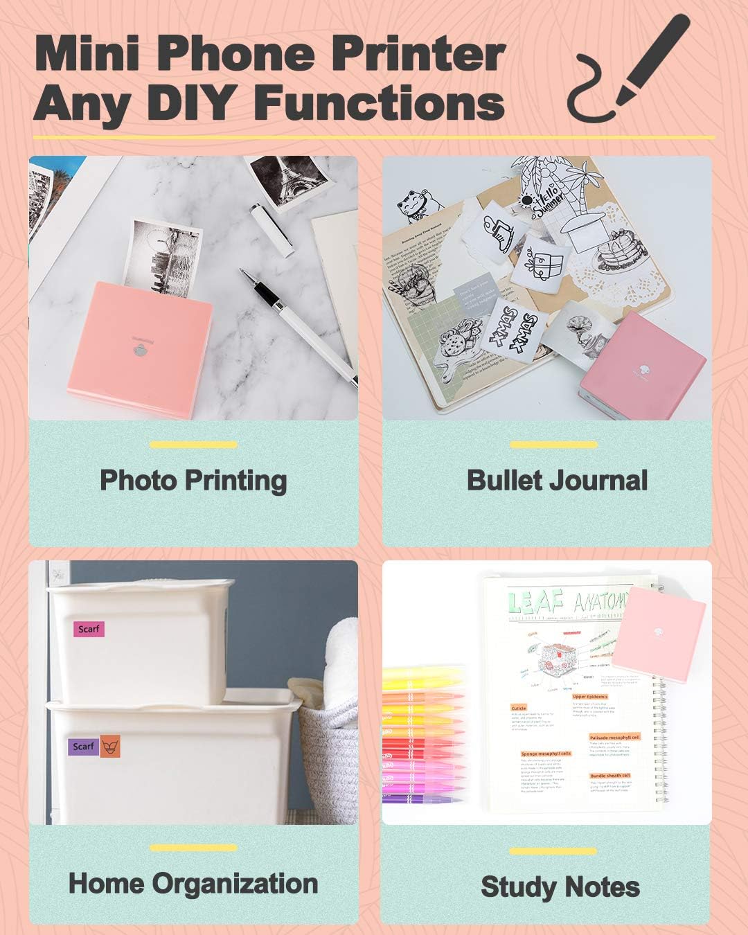 - Phomemo Sticker Printer for Students of All Ages- can be used to print study notes, anatomy cards, chemistry, geography, physics, math and excerpt charts. The mini sticker printer can also be used to help students learn by using the 'scan' feature to clearly print study graphics