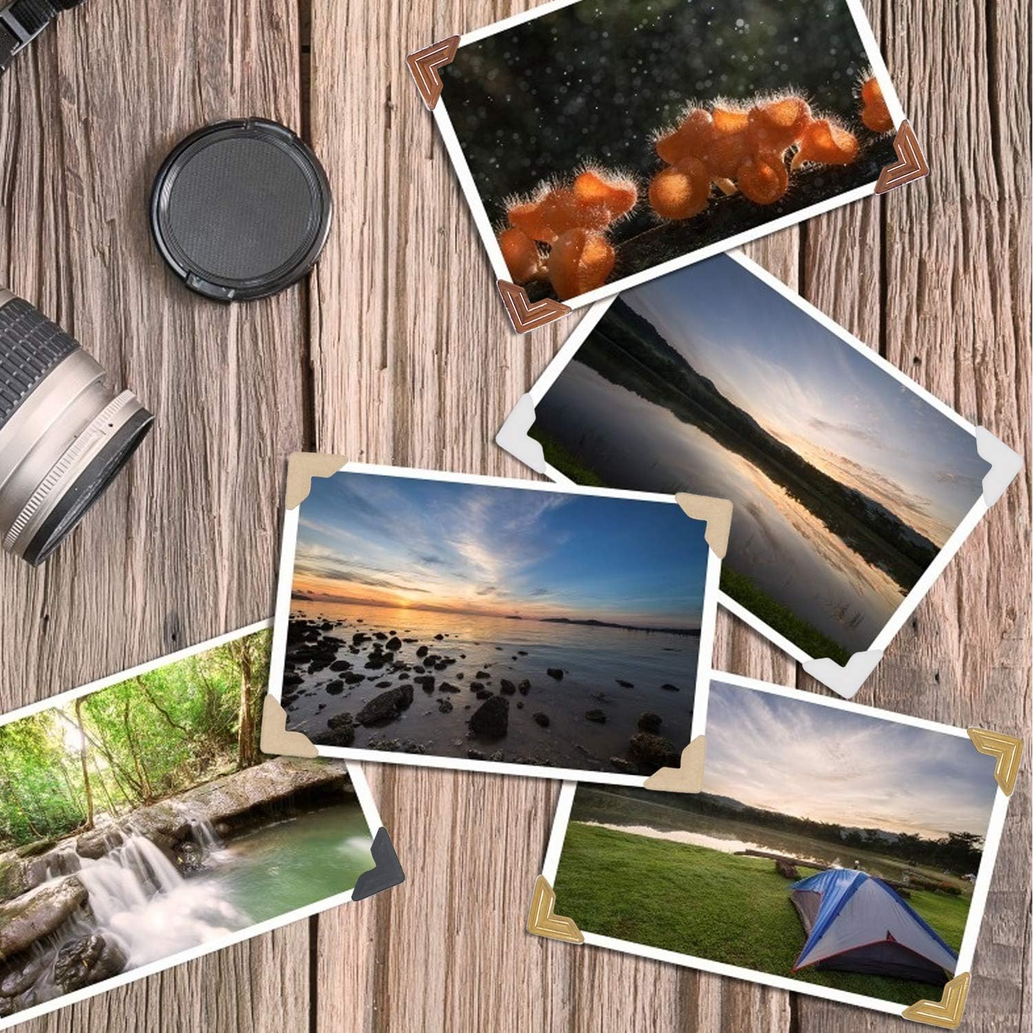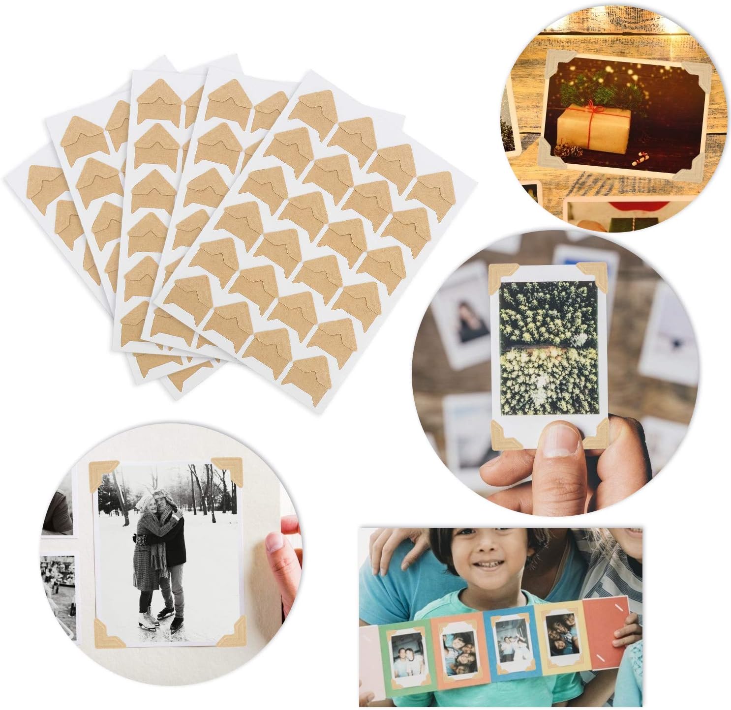 - Premium Materials: PVC. Self adhesive photo corners to protect your photos from being damaged with gel. Waterproof and does not come off, the classic vintage style is perfect for any photo decor
