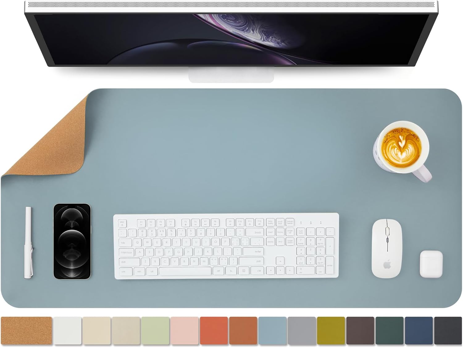 Cork Desk Mat - Dual-Sided Desk Pad for Office and Home - Desk Organization and Accessories - Ideal for Large Mouse Pad and Desk Mats on Top of Desks(Light Blue,90cmx 43cm)
