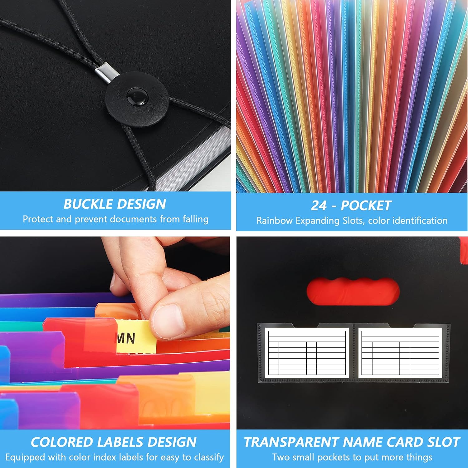 - 2 Pack 24 Pockets expandable file folder fits well for all A4/Letter Size paper, which is suitable for storing documents in daily life