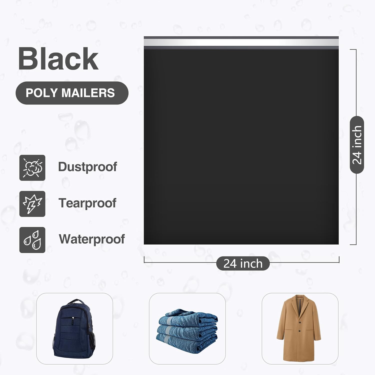 - Eye Catching Poly Mailers: The size of the bags is 24x24 inches. The black is an attractive color that makes your products stand out of standard white poly mailers. With gray inner lining, these poly mailers are opaque. Used tear resistant material, UCGOU poly mailers can not only protect your privacy well during transportation, but also keep your goods arriving safely