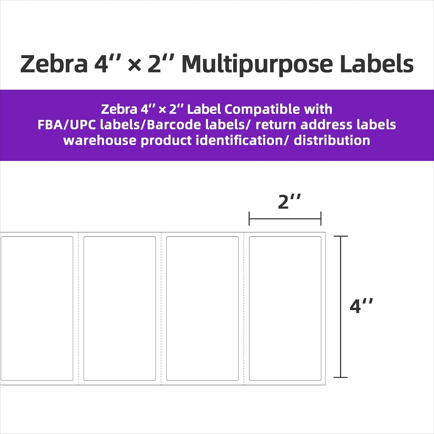 - Multipurpose: 4"x 2" Label is Print Barcode Labels. Also, it is perfect as shipping address labels, barcode labels, FNSKU labels. It can be used for envelope, mail, letters, and parcel, temporary and indoor signage, packaging and other retail uses