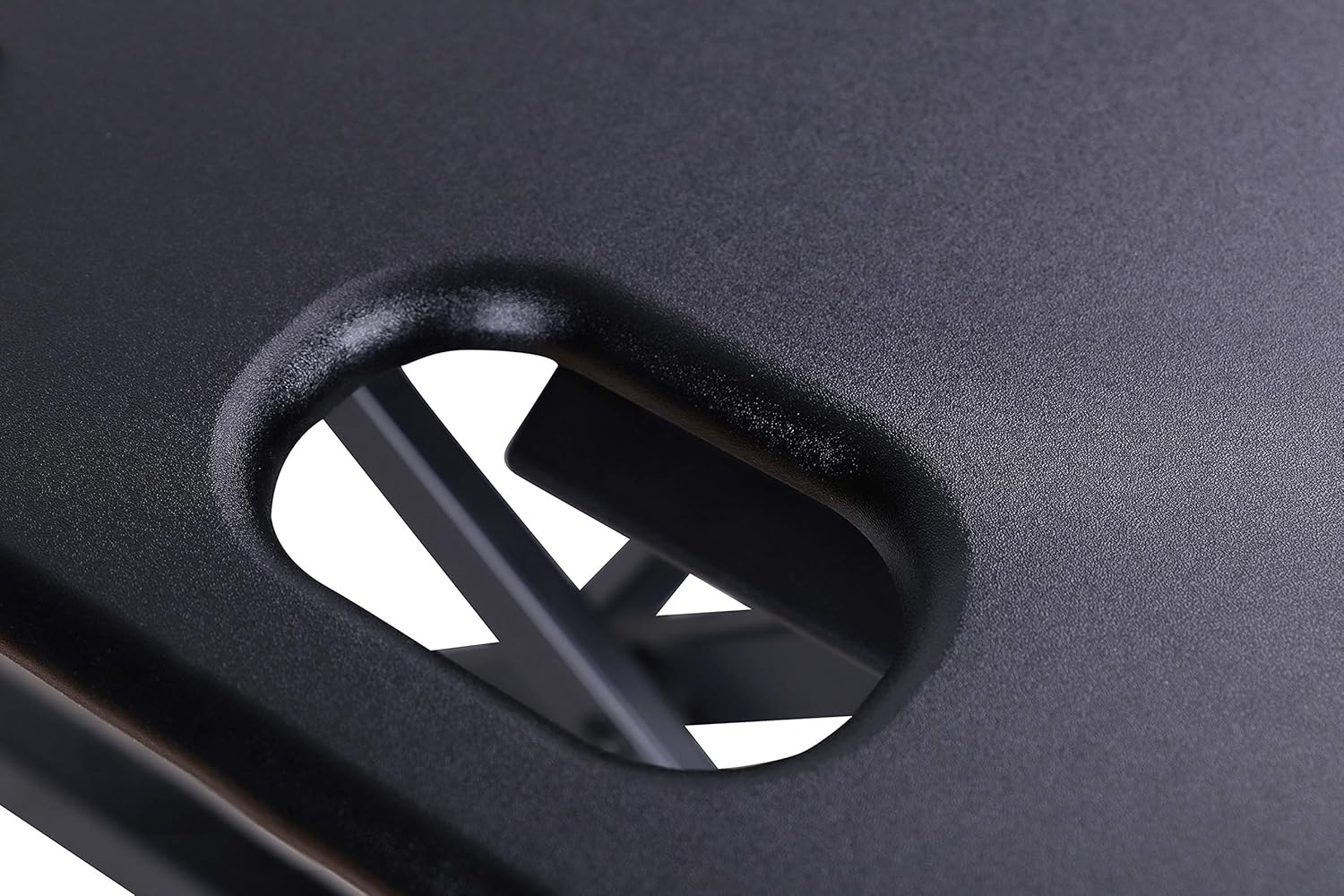 - QUICK, EASY AND STABLE HEIGHT ADJUSTMENT WITH EVR ENHANCED VERTICAL RANGE DESIGN: Sturdy metal frame with easy-grip side handle and gas piston assist, can raise and lower up to 45 pounds with continuous height adjustment from 5" up to 20" above desktop to optimize the ergonomic work position for people of most heights. Straight up and down motion minimizes required depth (23.25").