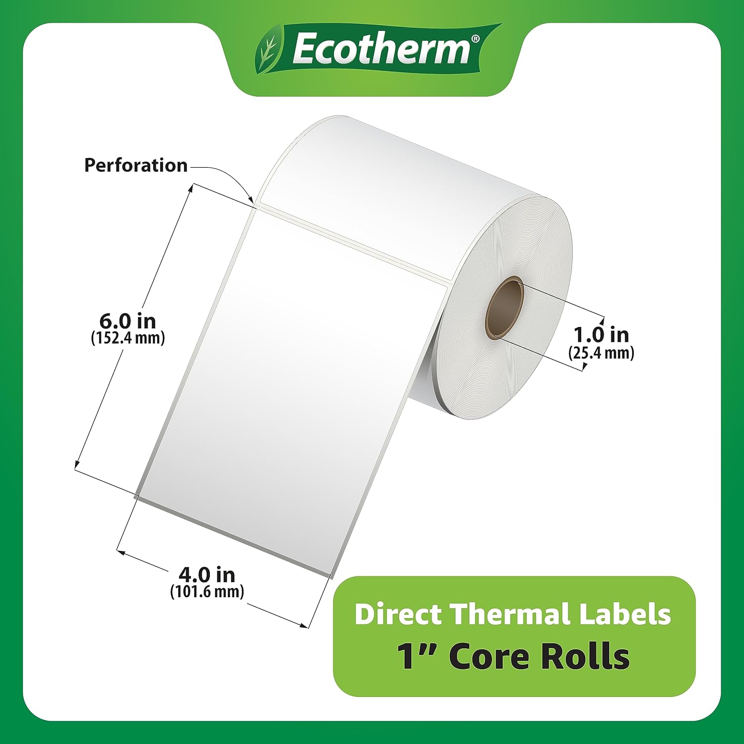 4" x 6" Thermal Labels | 4 Rolls | 1100 Labels | fits Zebra, Munbyn, Rollo, Godex, Arkscan, iDPRT, Offnova Thermal Label Printers and More | Blank White Adhesive Stickers by Ecotherm