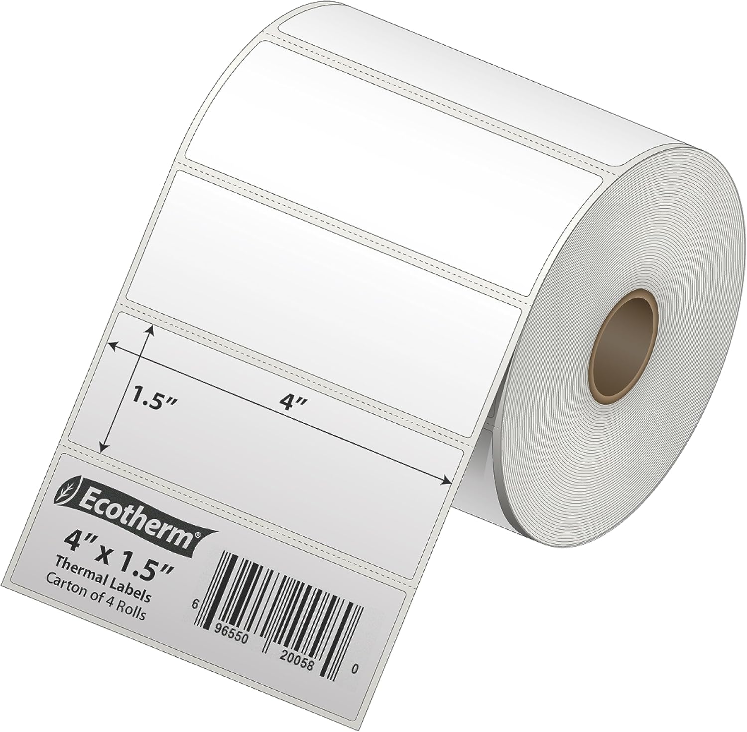 4" x 1.5" Thermal Labels | 4 Rolls | 3940 Labels | fits Zebra, Munbyn, Rollo, Godex, Arkscan, iDPRT, Offnova Thermal Label Printers and More | Blank White Adhesive Stickers by Ecotherm