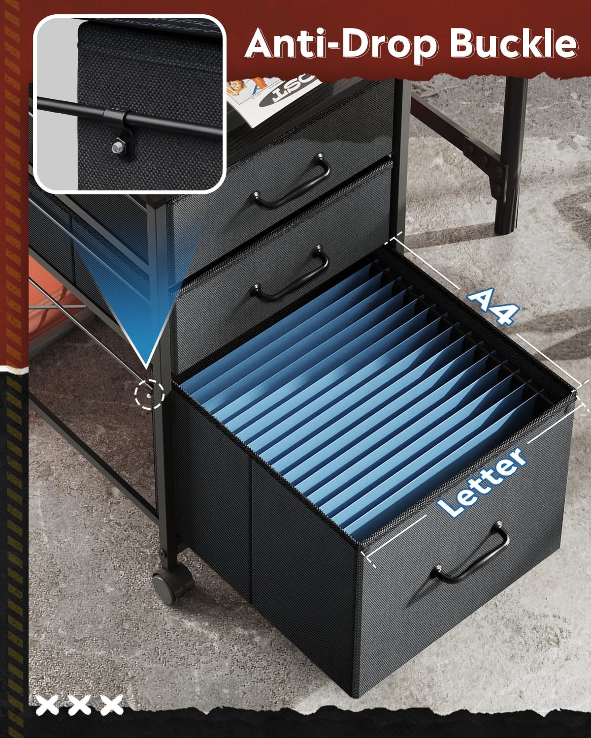 - Easy to Move: Rolling on 4 wheels, this mobile file cabinet can fix or move around your home office freely. Built-in brakes on front 2 casters to keep it in position and add stability. Unique fabric drawer design makes it only weigh 22 lbs. and light to move.