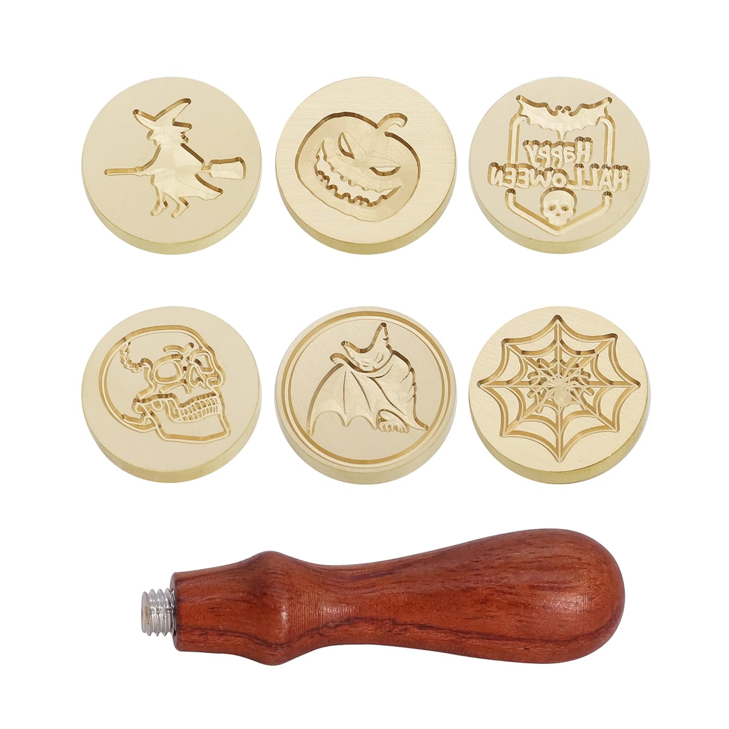- Wax Seal Stamp Size: Seal Head Diameter: 25mm/0.98''; Total Lenght of The Stamp: 90mm/3.54''. Packing Includes: 6 x 25mm wax seal stamp heads (witch, pumpkin, happy halloween, skull, bat, spider) + 1 x wooden handle + 1 x gift box (not including sealing wax)