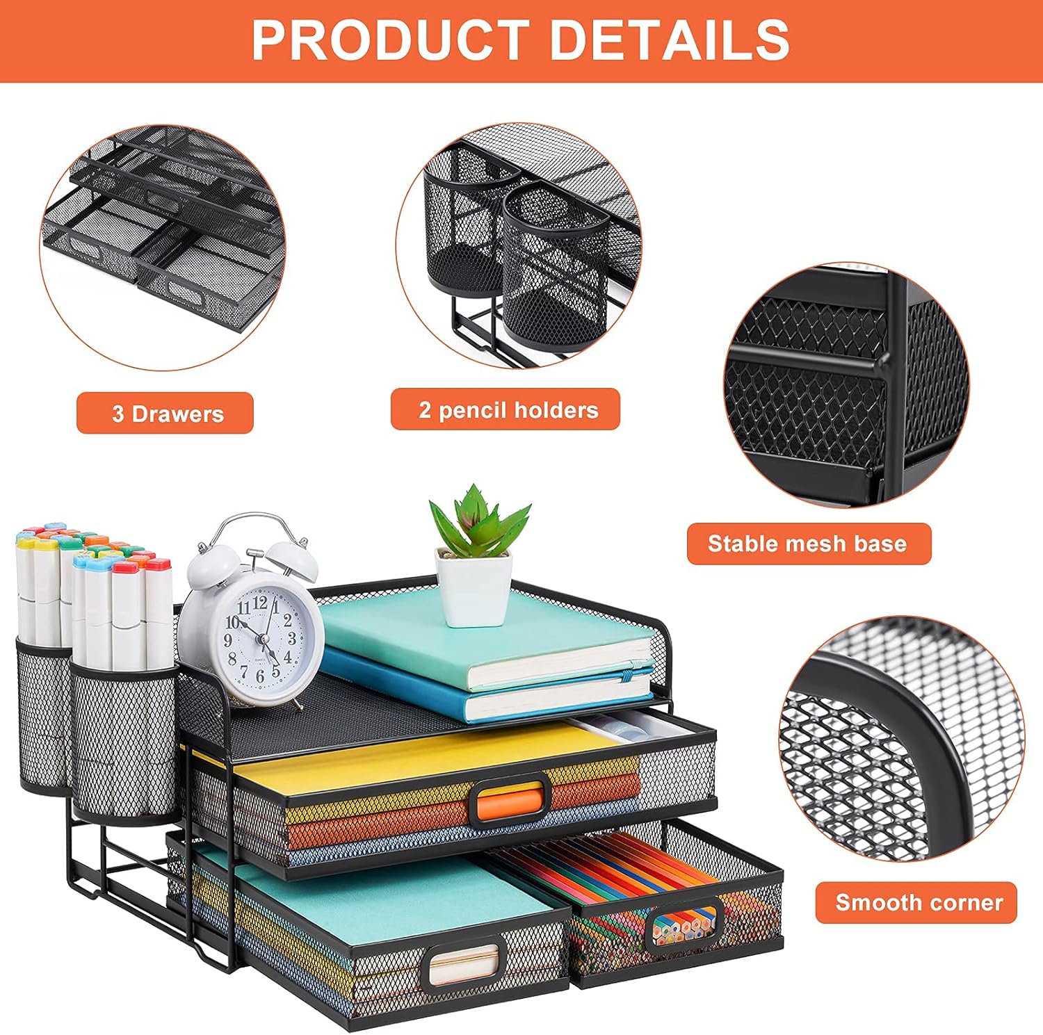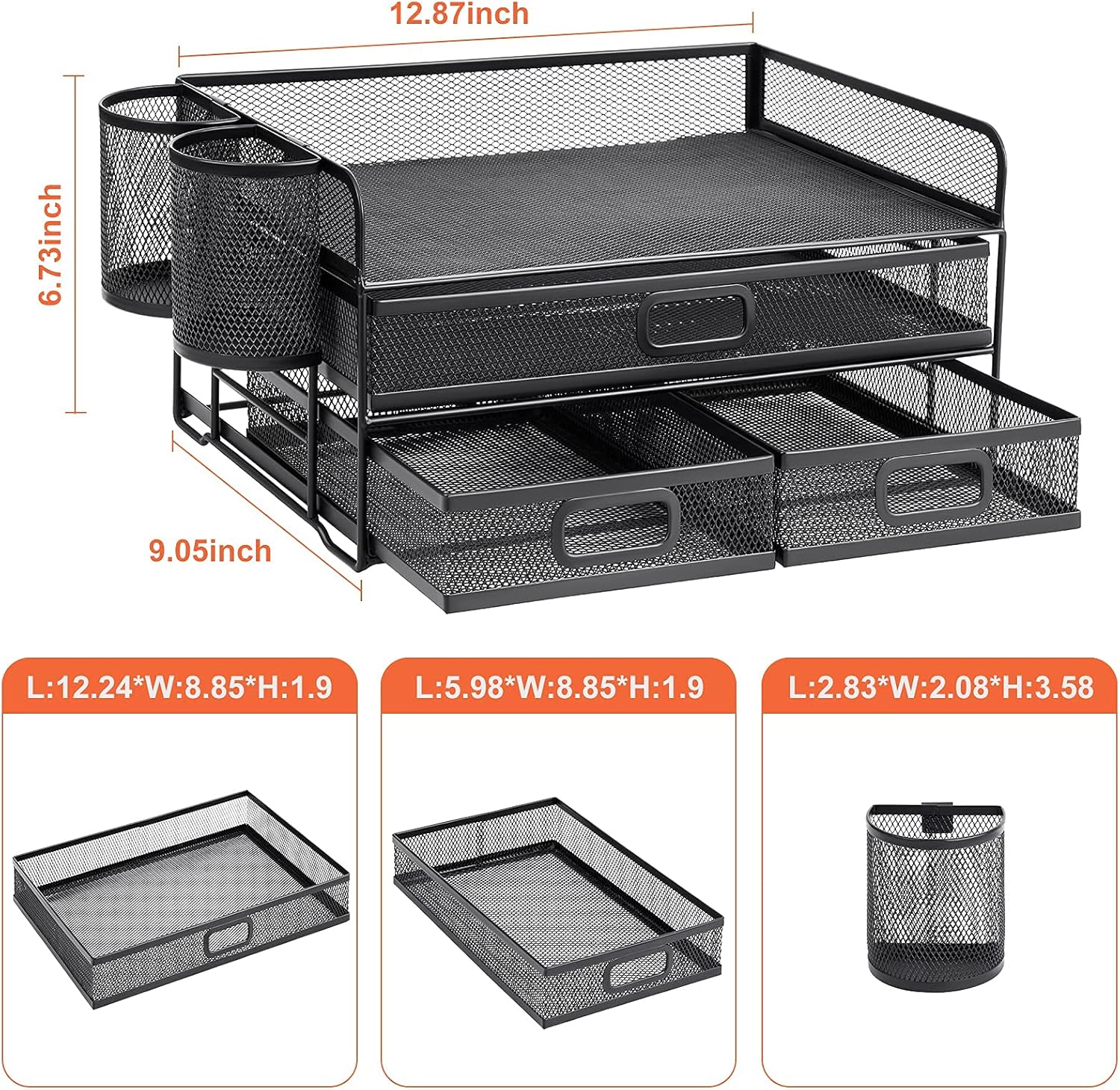 - 【Convenient Personal Storage】Compared with other mesh desktop organizer. The Multi-drawer design can help you store some important papers, whether it is personal letters or personal information can provide you with a certain privacy protection space.