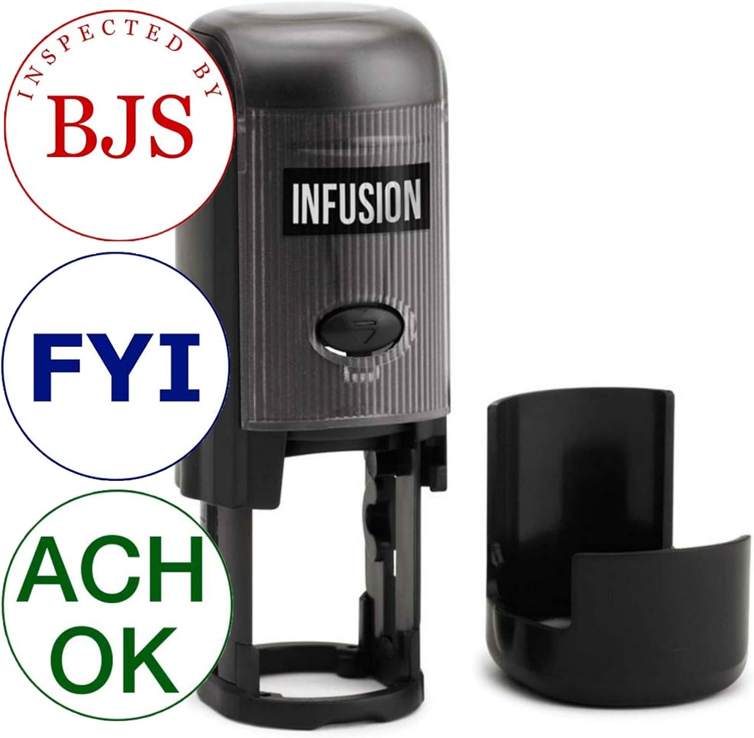 Infusion Custom Text Round Self-Inking Rubber Stamp (1" Diameter) - Up to 3 Lines of Text and Border