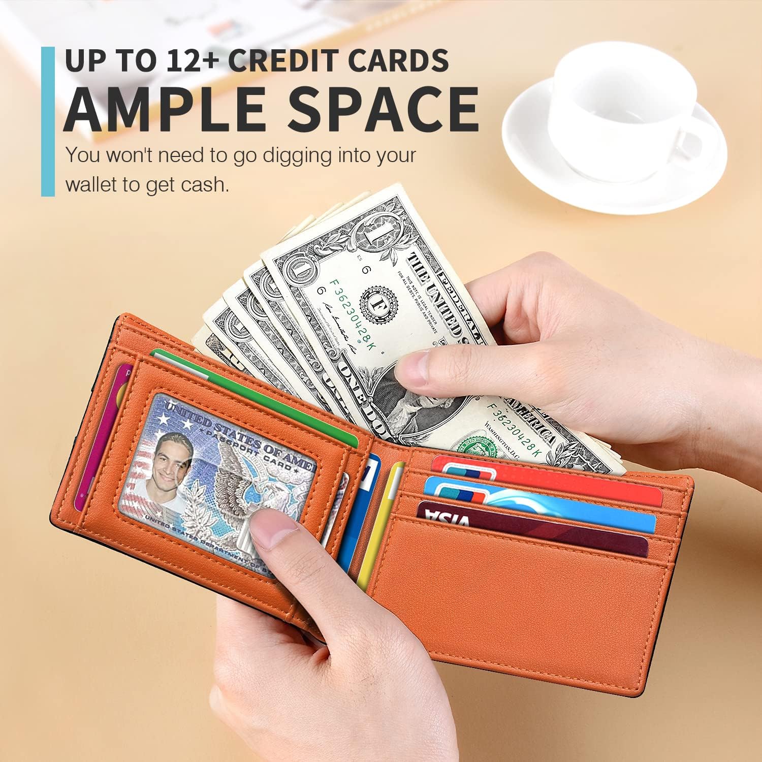 • Ultra-thin Design - Even if it is full of cards and cash, its thickness is only about 0.8 inches, this mens wallet will fit in your pocket perfectly without bulging out