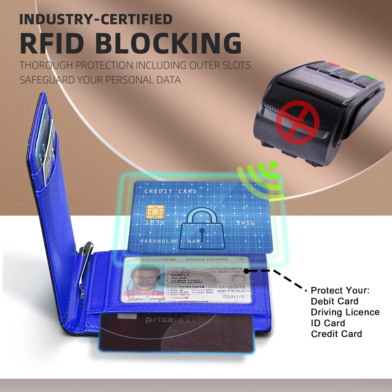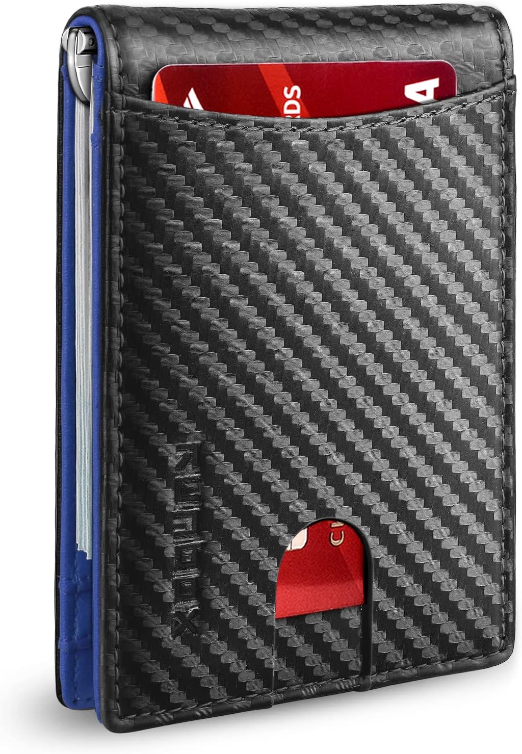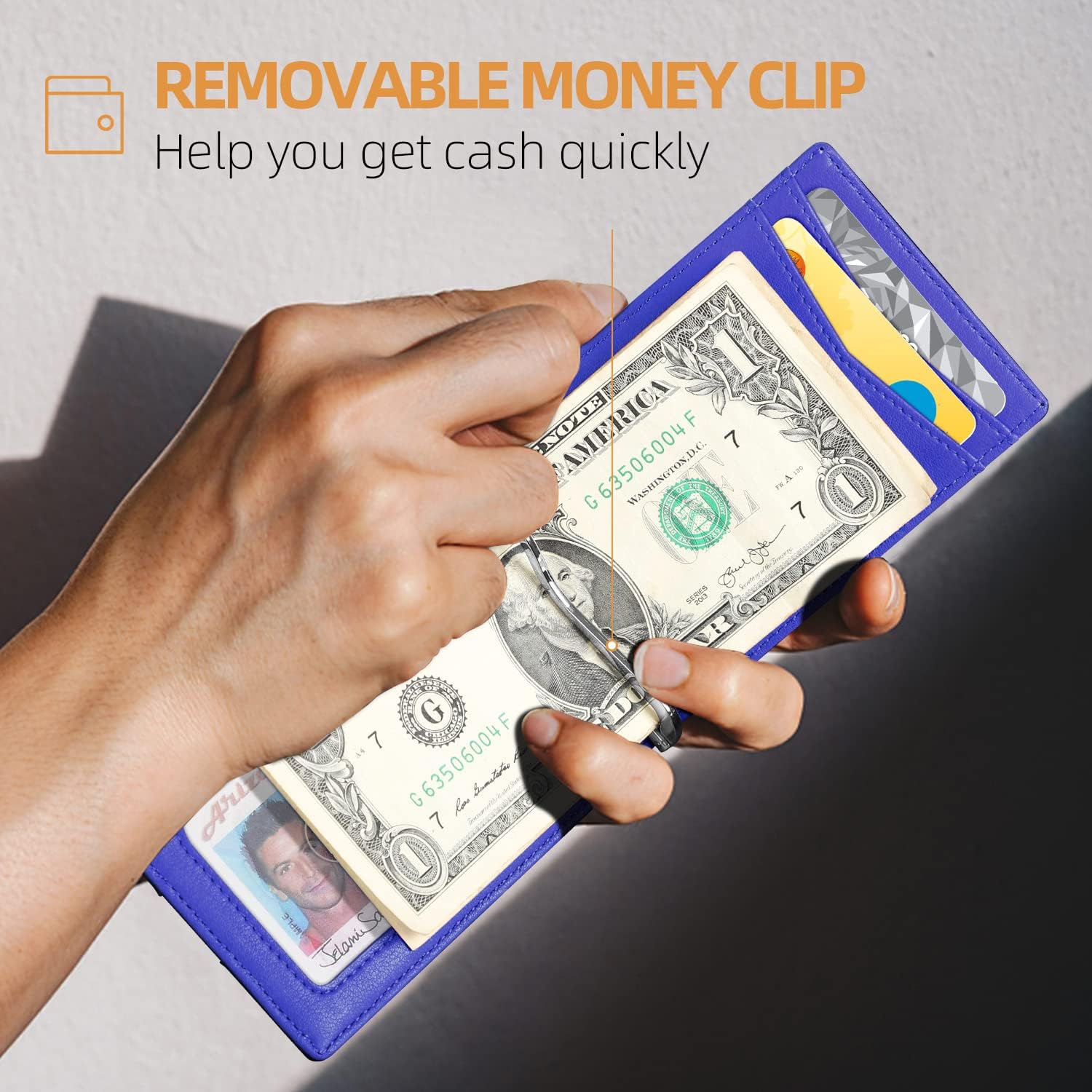 Slim Wallet for Men Genuine Leather RFID Blocking Bifold Minimalist Front Pocket Mens Wallet with Money Clip Thin Gift Box