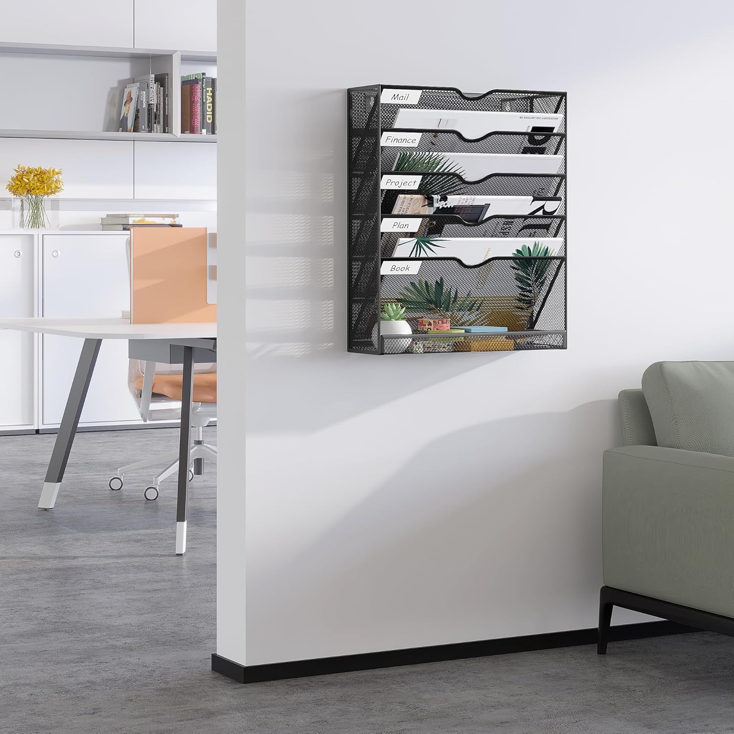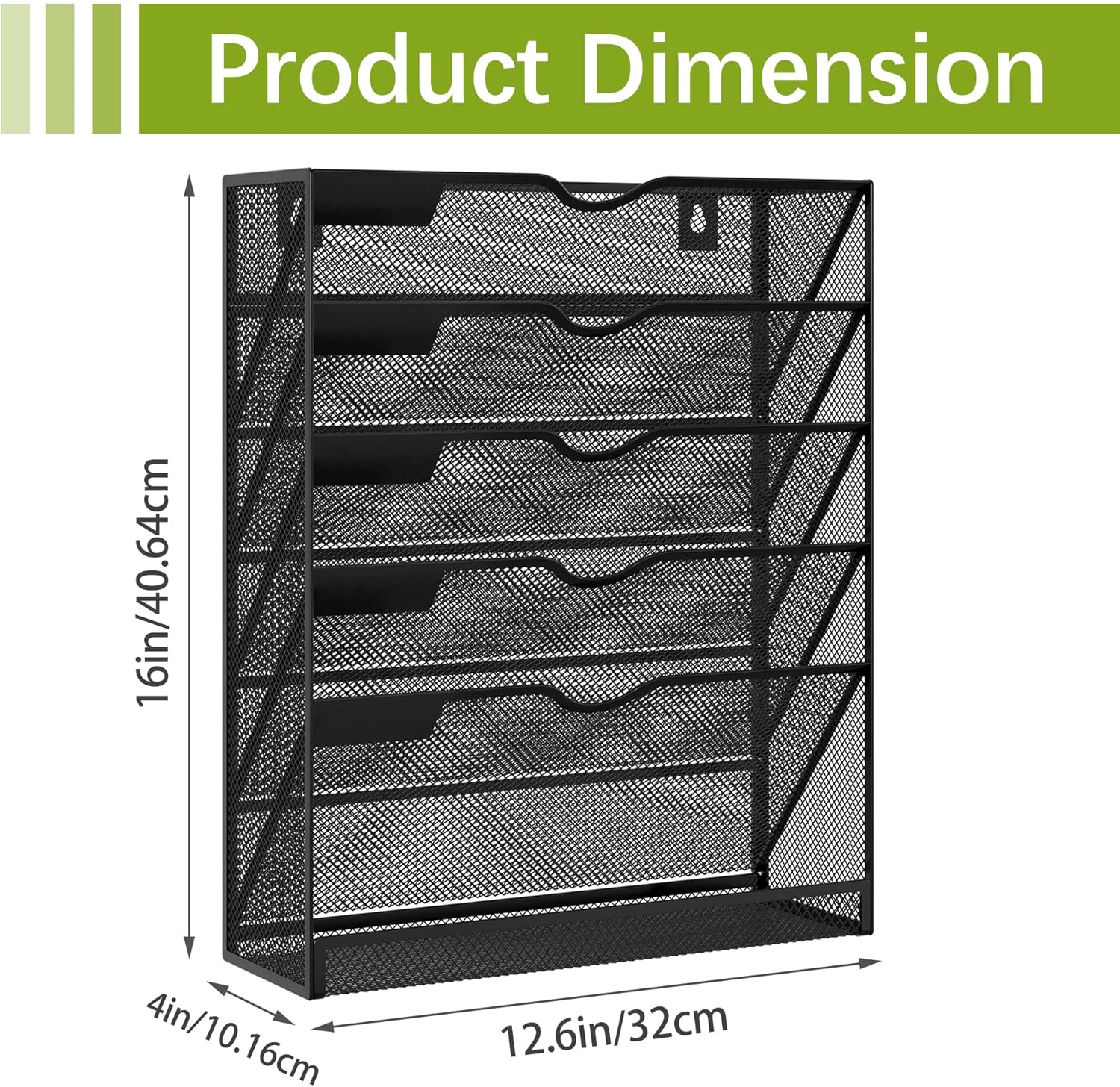 EasyPAG 5-Tier Wall File Holder, Mesh Hanging Folder Organizer with Classify Label, Versatile Desk File Organizer for Office Home, Vertical Wall Mounted Mail Sorter, Sides Closed, Black