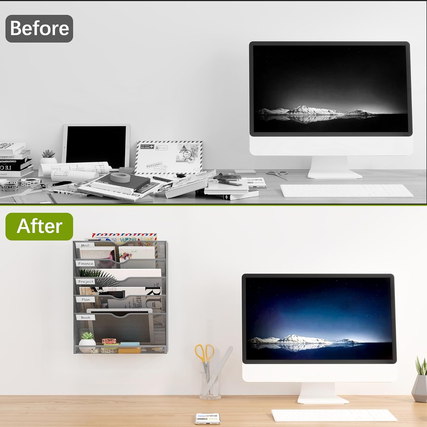 - Versatile Desk File Organizer: The office organizer can be mounted on the wall or standing on desk. Take full advantage of your vertical space and keep your desktop clear.