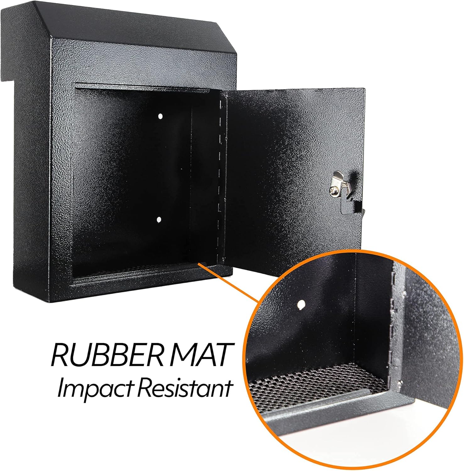 - LARGE MAILBOX: The key drop box provided 510 cubic inches storage bin, giving it plenty of space for receiving and securing your daily items. This large mailbox can easily holds keys, cash, money, rents, payments, mails, letters, envelopes, checks, remotes, magazines, newspaper, documents and thin items.