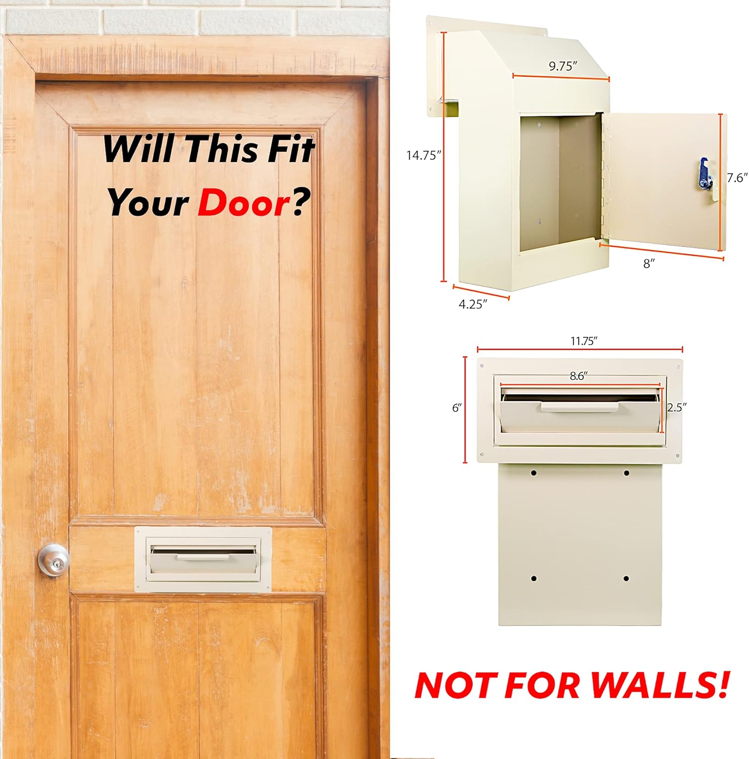 - š DOOR-MOUNT BOX: This large mailbox can be mounted on office doors or house doors up to up to 1.75" thick. Simply cut out a rectangular shape and follow the instructions in the manual. (Note: this locked drop box is NOT for walls.)