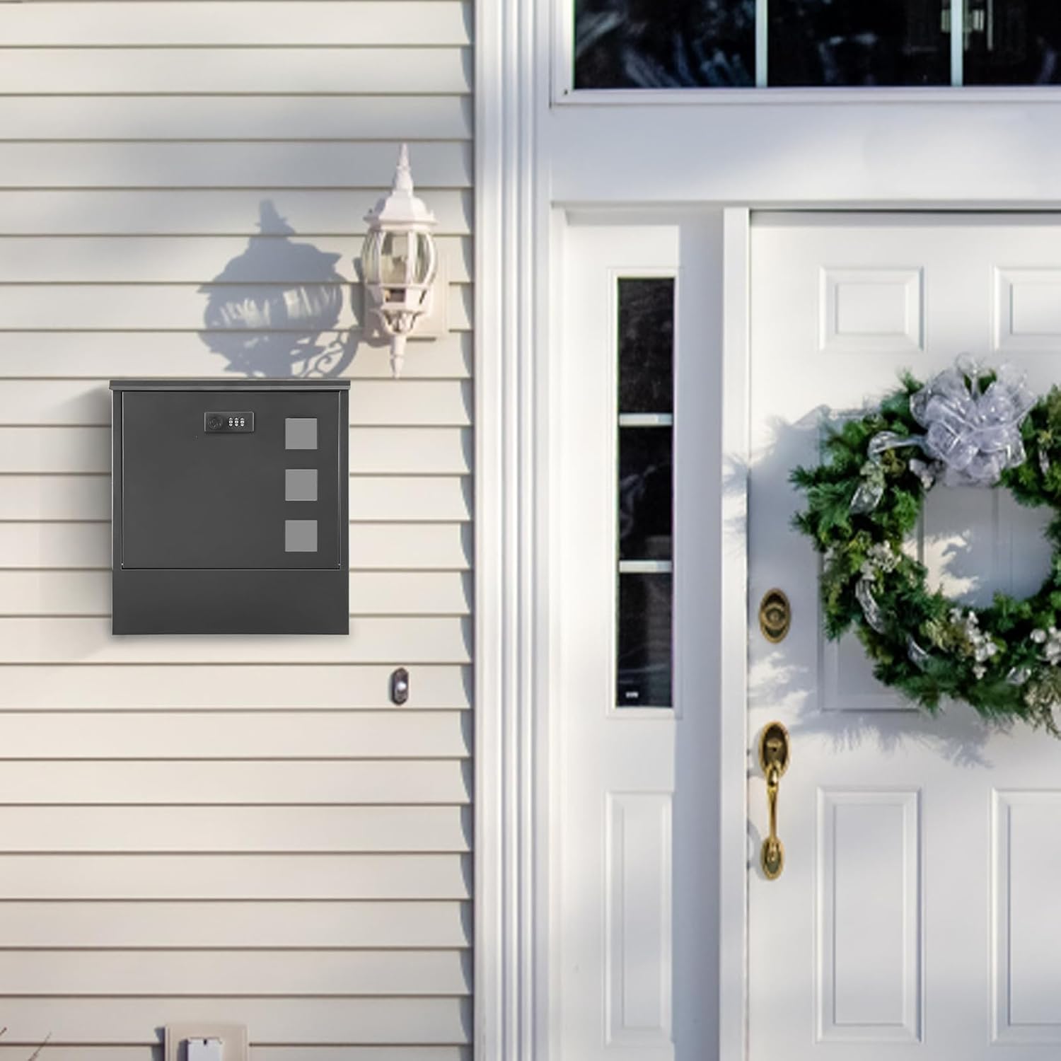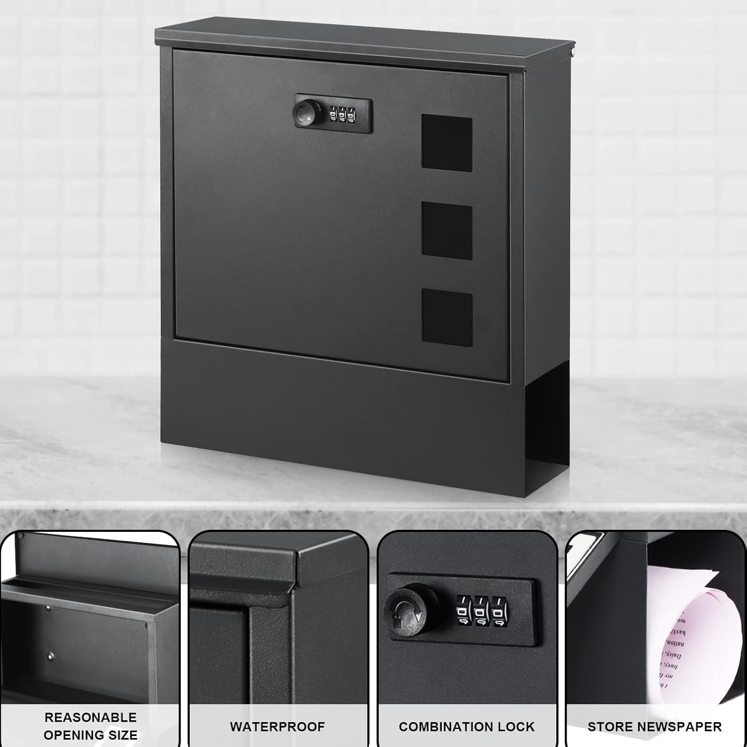 xydled Mailbox with Combination Lock,Large Capacity Wall Mounted Locking Security Mailbox,Large Mail Box with Newspaper Compartment, Black,12.8x11.8x3.3 Inch