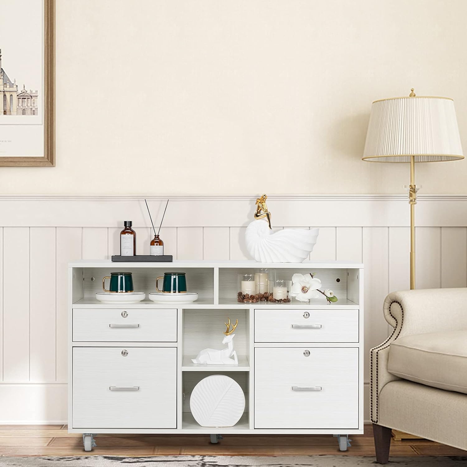 - ăSPACIOUS DRAWERSăThis is a heavy-duty functional versatile white file cabinet that provide ample file storage for your home&office. 4 Drawers comes with full extension slides that glide easily in and out. File drawers accommodate letter hanging files and each drawer has lock with two keys